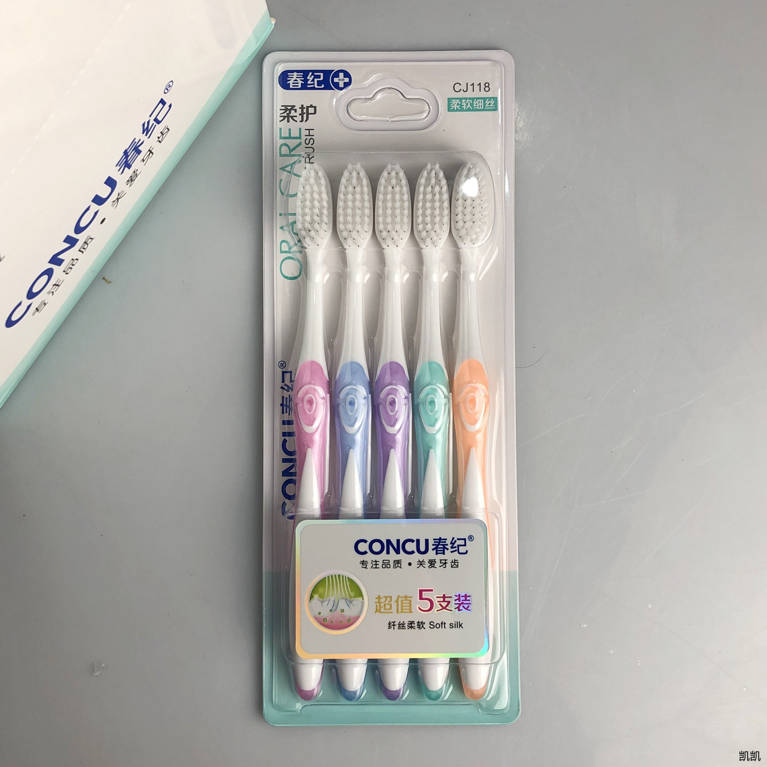 春纪CJ118柔护牙刷五支装软毛柔软细丝家庭装清洁手动包邮