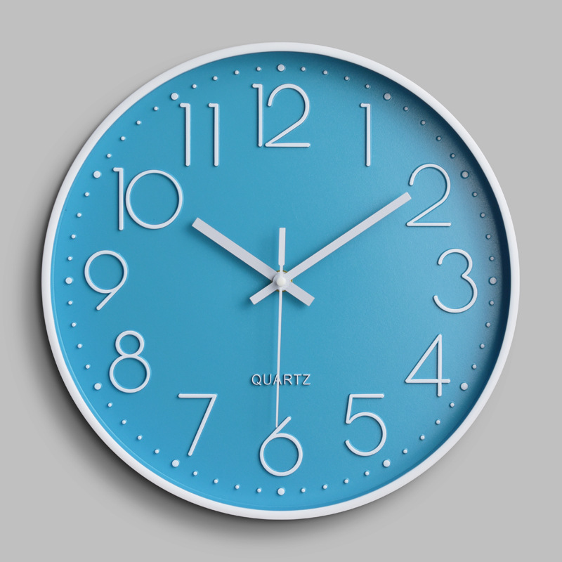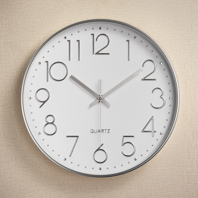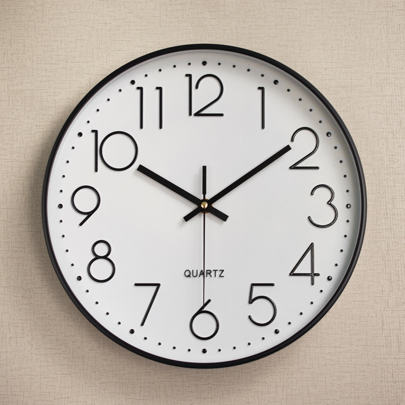 塑料静音挂钟 墙钟石英钟表立体数字刻度挂钟 钟表批发 12寸30CM