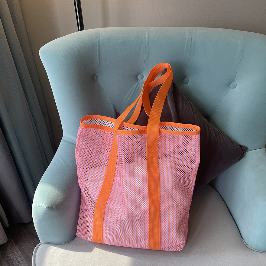 透明网纱沙滩包时尚轻便购物袋游泳包大容量女士单肩包旅行妈咪包