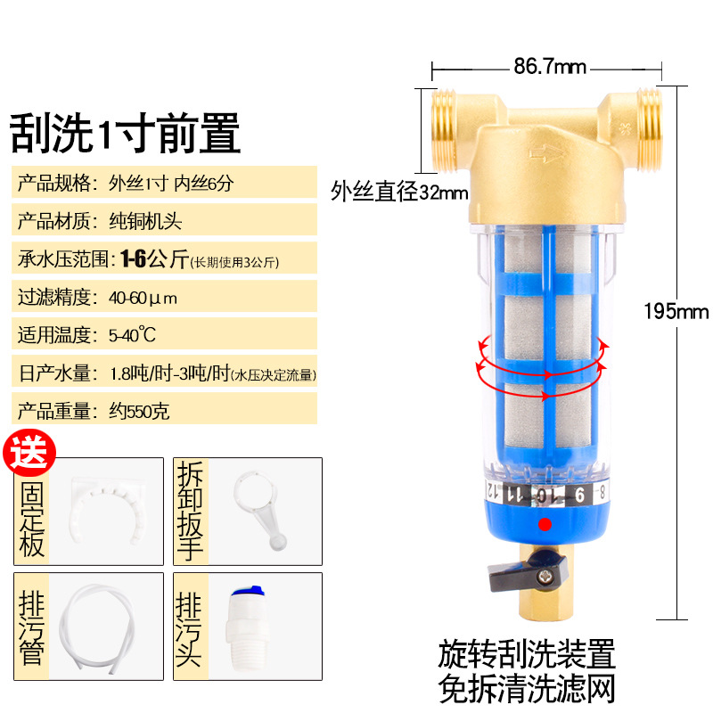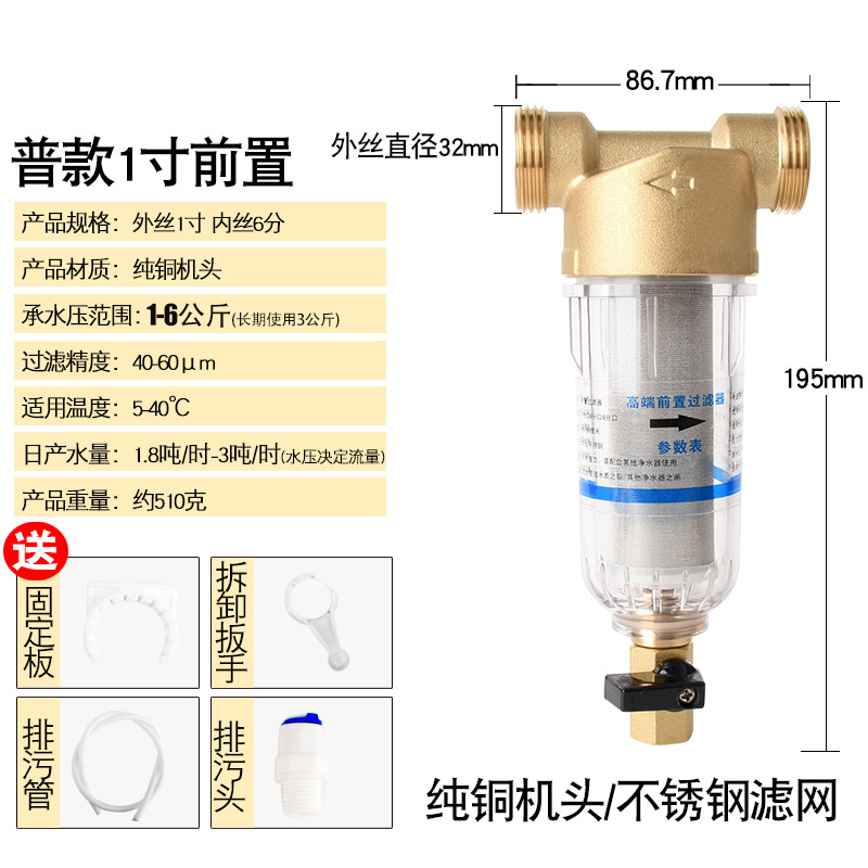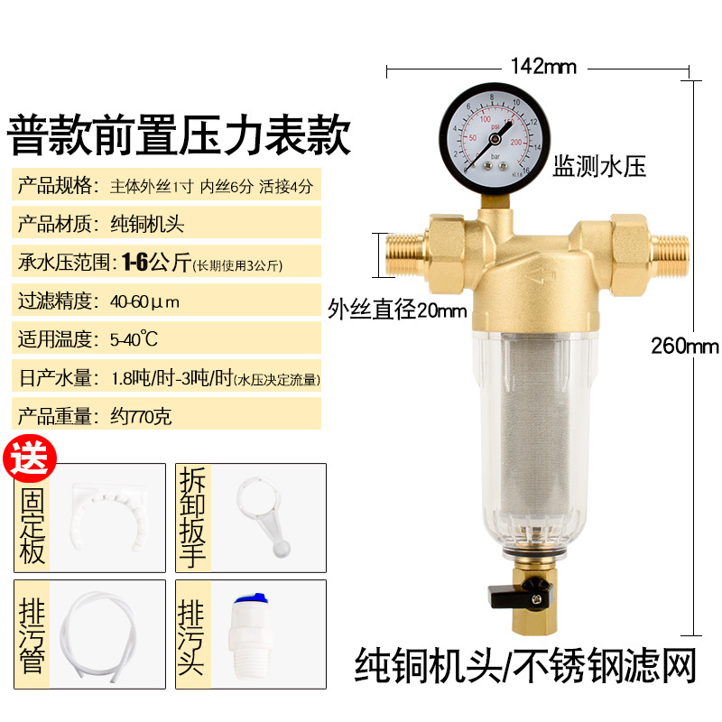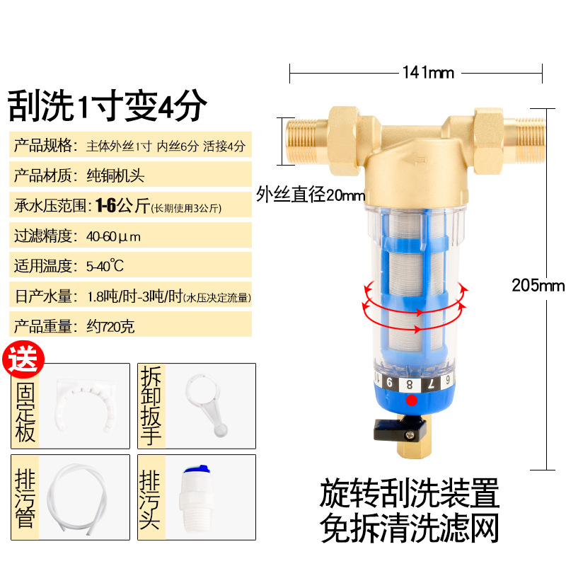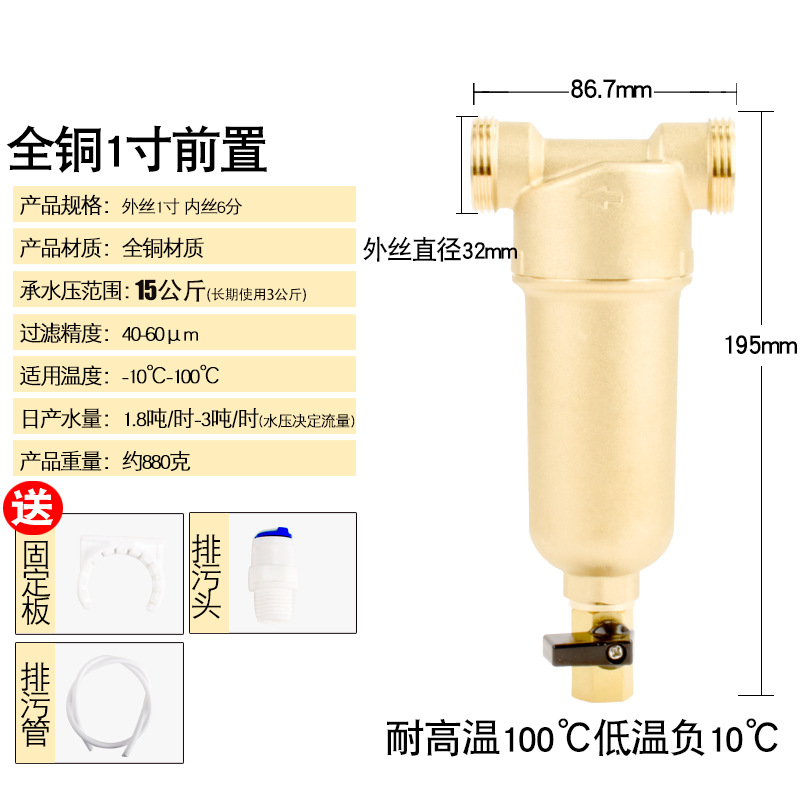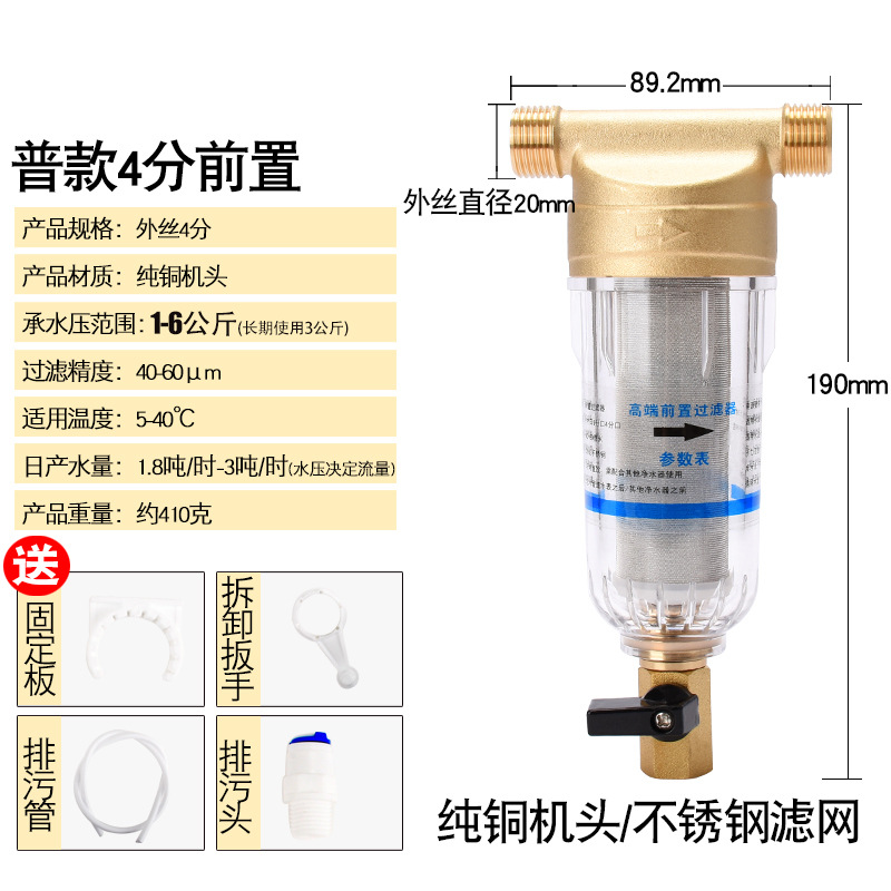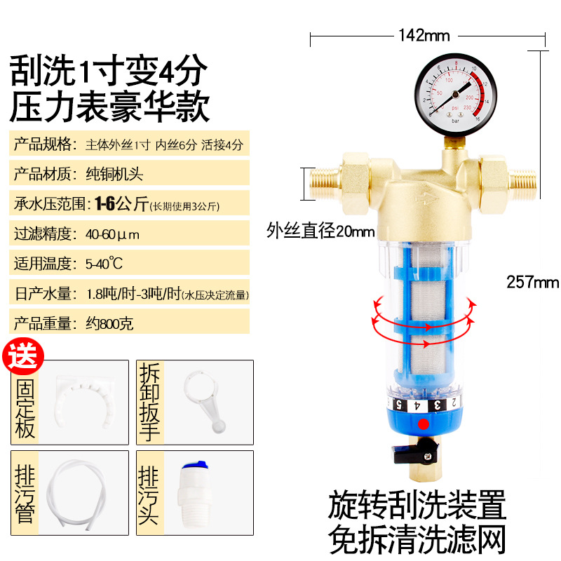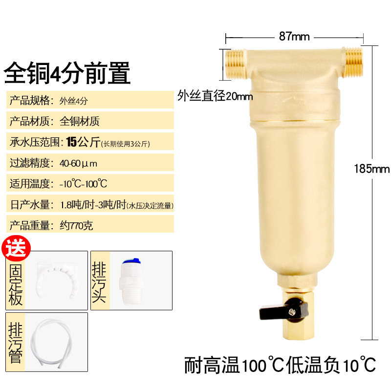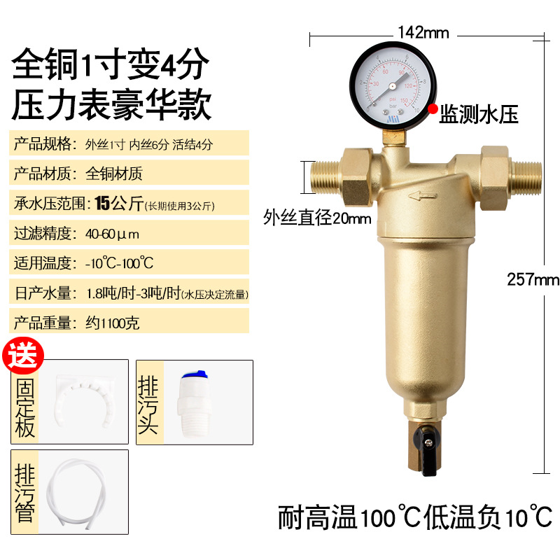 厂家直销全铜前置过滤器反冲洗家用自来水井水泥沙过滤中央净水