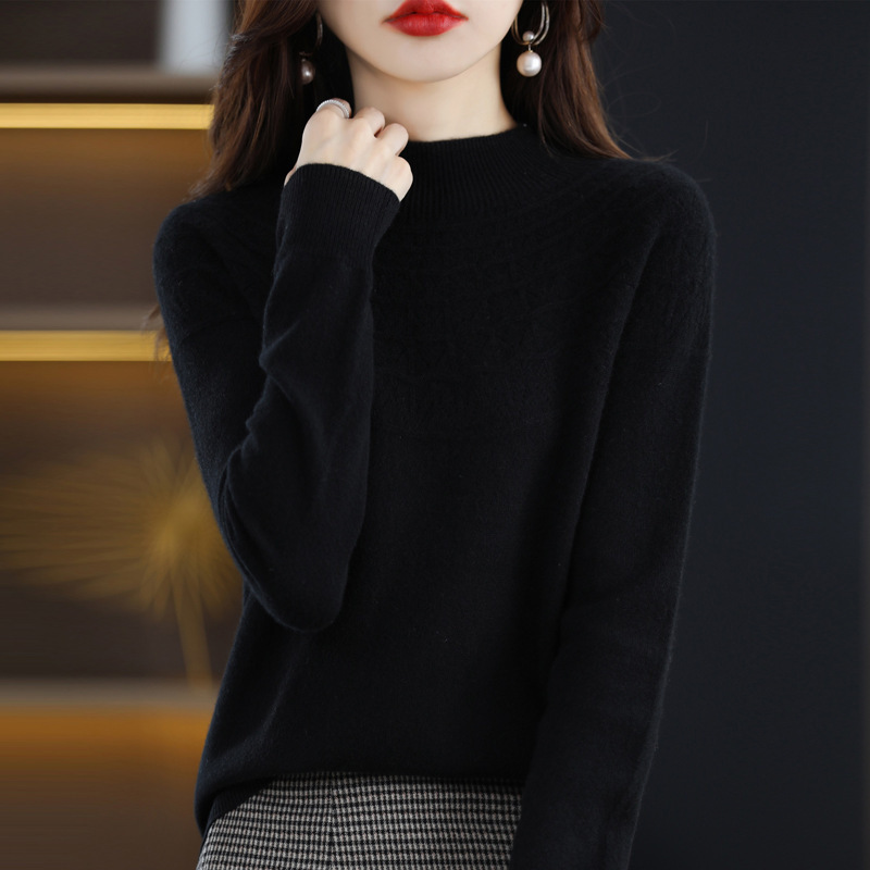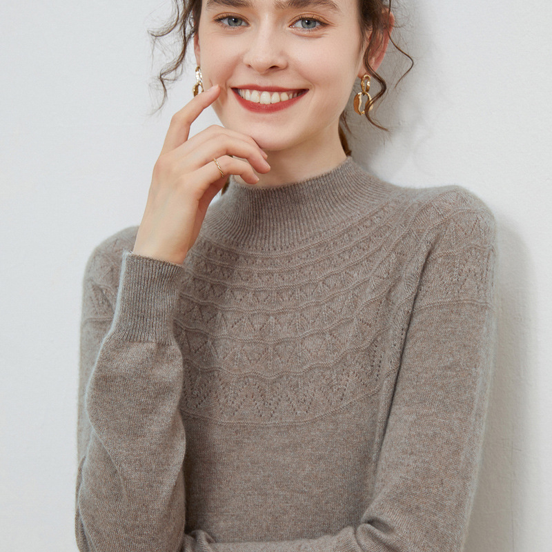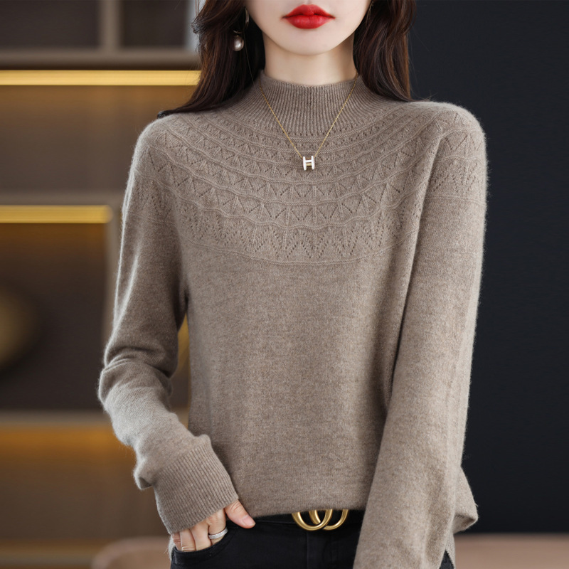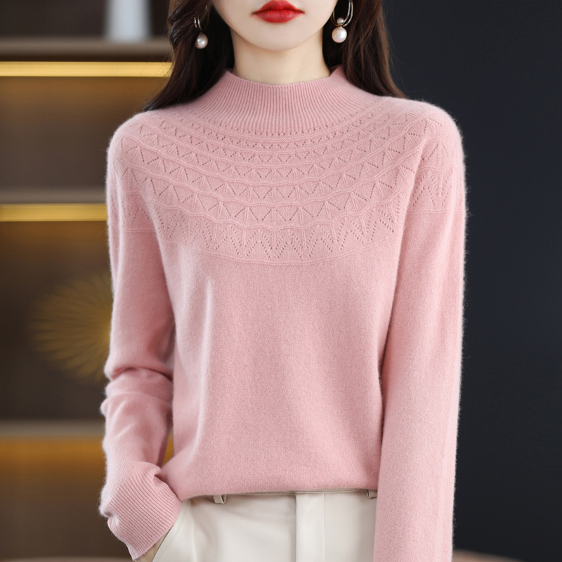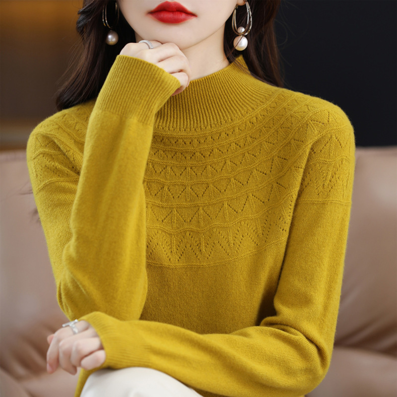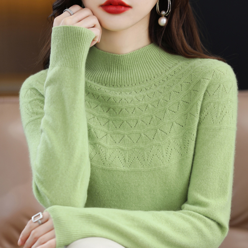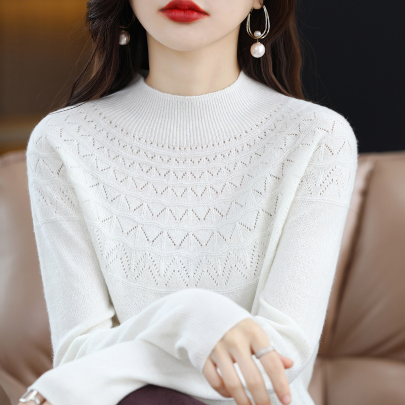 一线成衣镂空半高领羊毛衫女秋季新款无缝针织衫女士打底毛衣批发