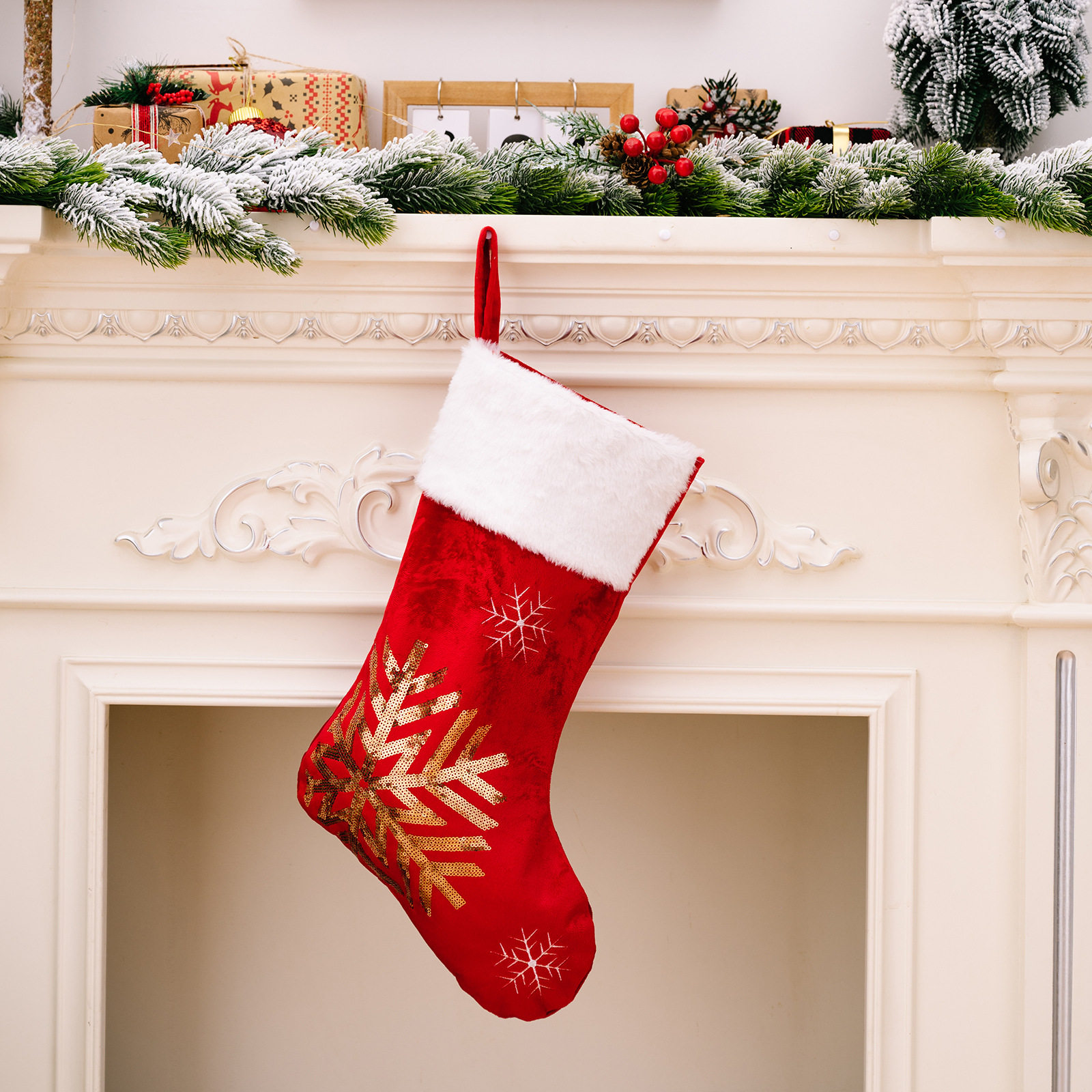 新款圣诞节装饰品白边雪花麋鹿金色亮片袜圣诞礼物袜红色高档袜子