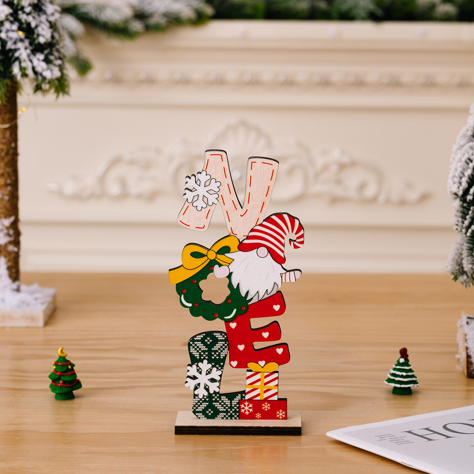 新款圣诞节装饰品印花木质摆件侏儒老人英文摆件桌面摆饰圣诞礼物