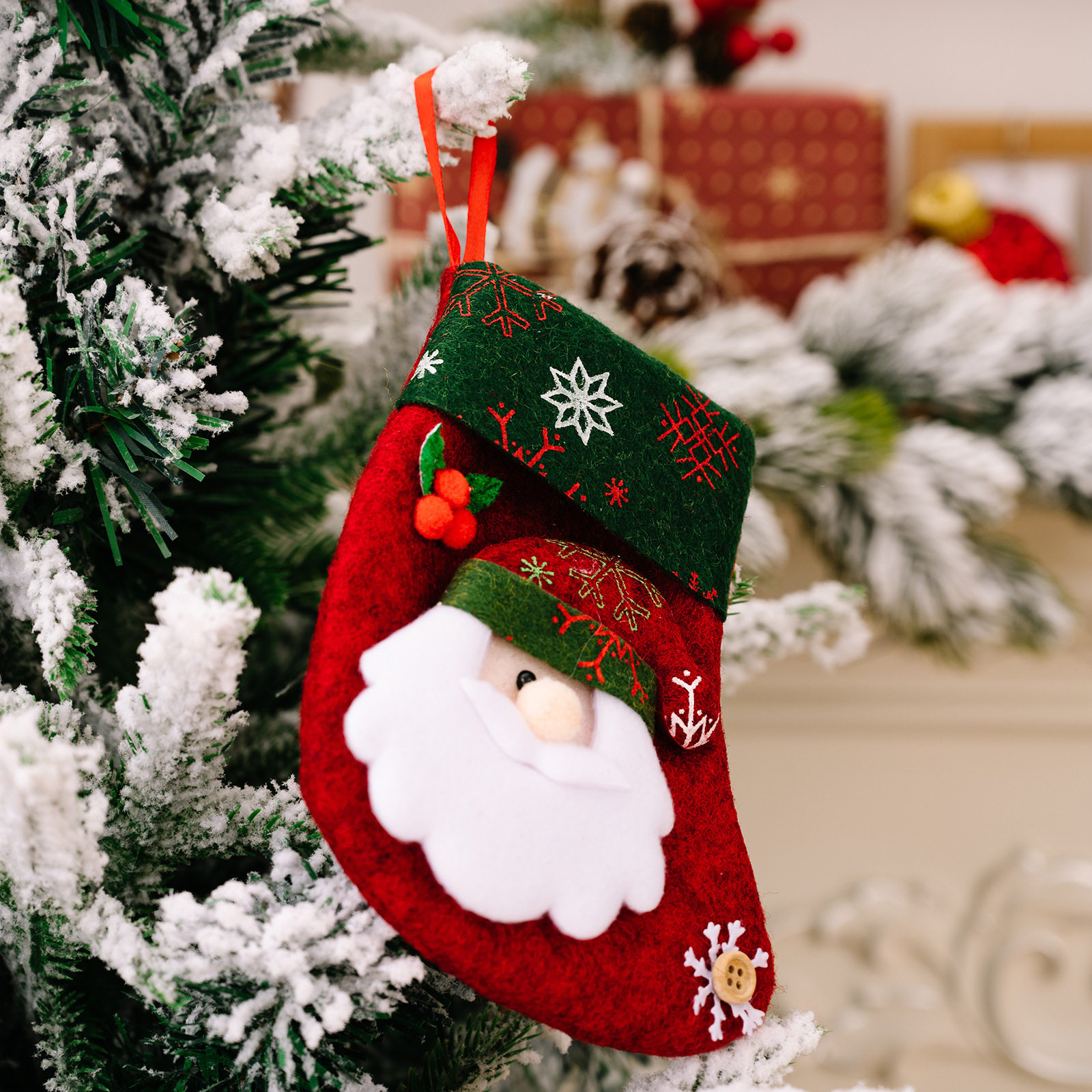 新款圣诞节装饰品雪花复古袜卡通儿童礼物袜圣诞袜装饰糖果礼物袋