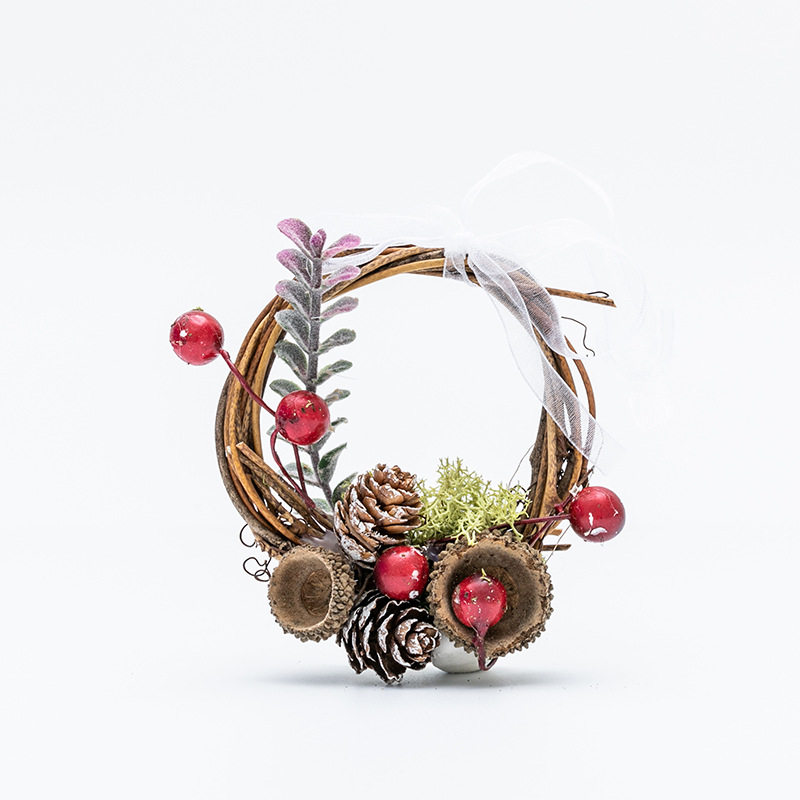 圣诞装饰品小花环小藤环红果装饰草编花环挂件吊饰圣诞树墙面装饰