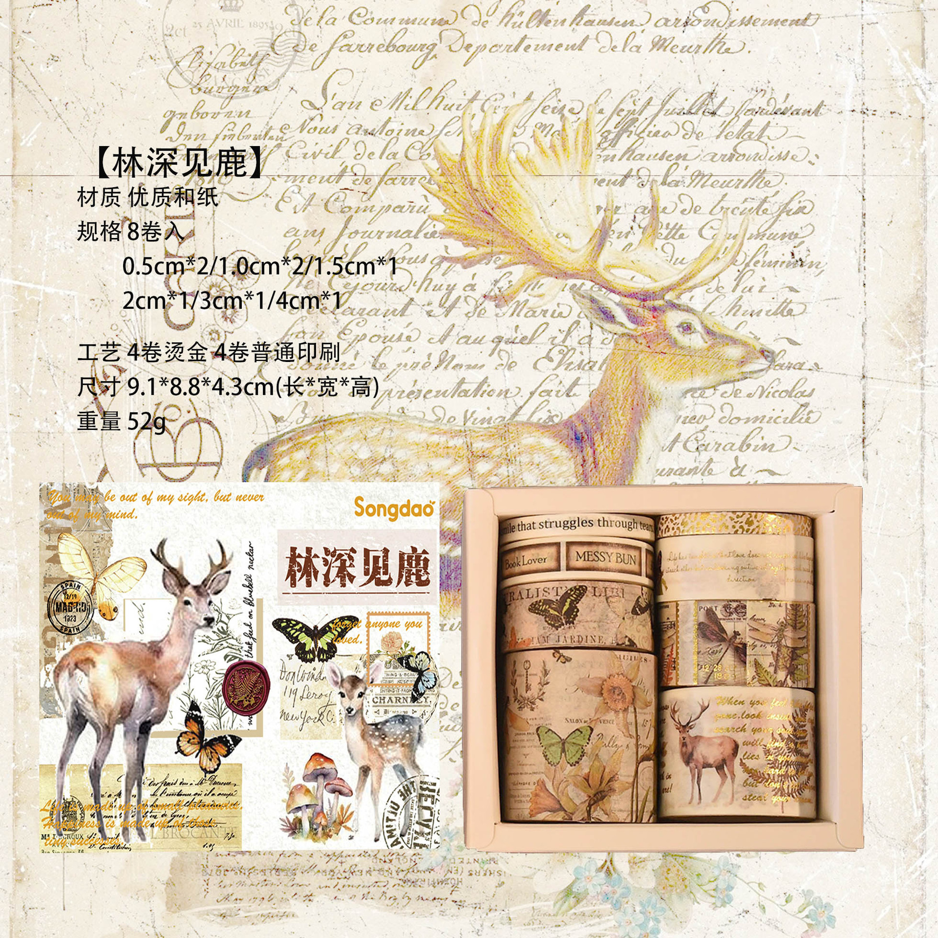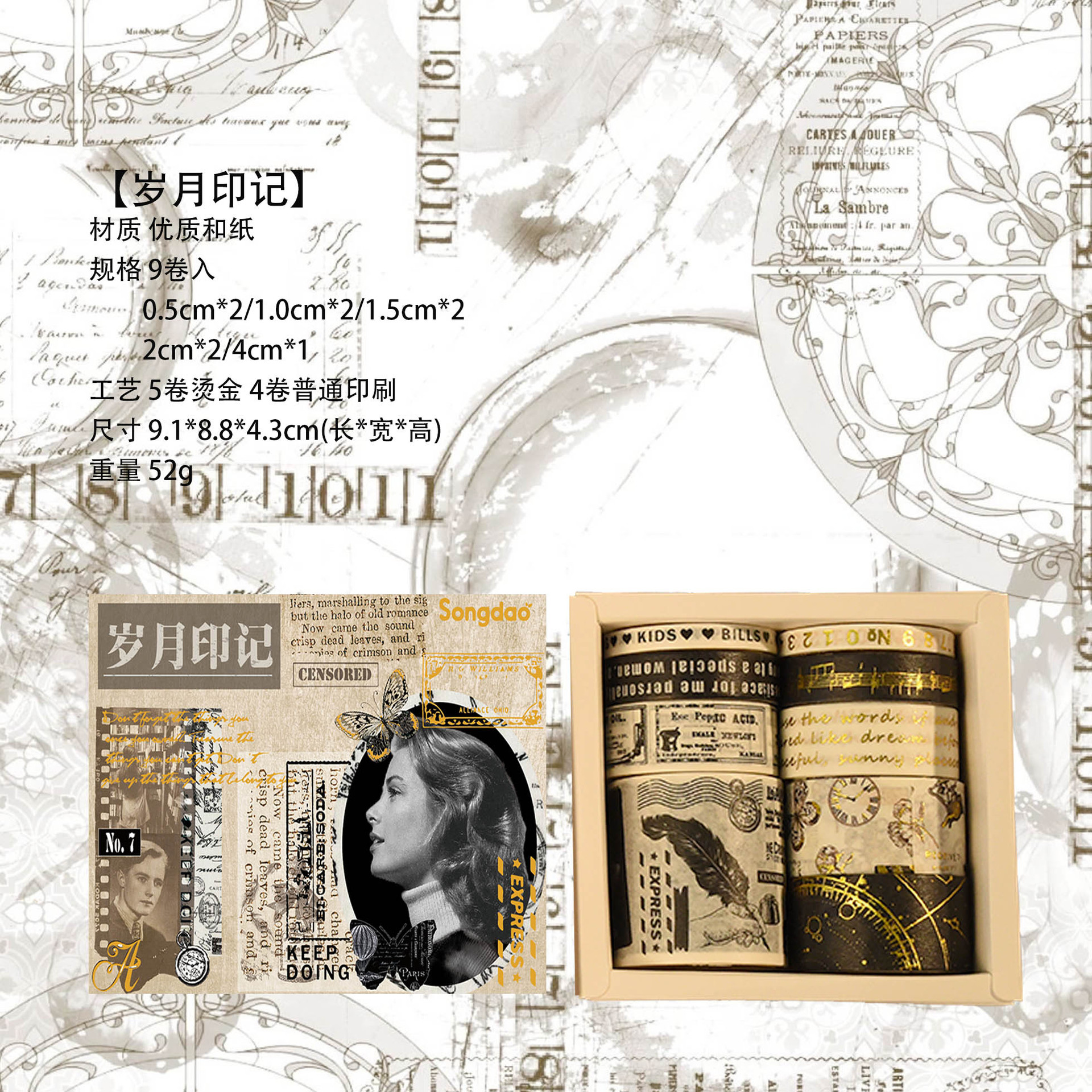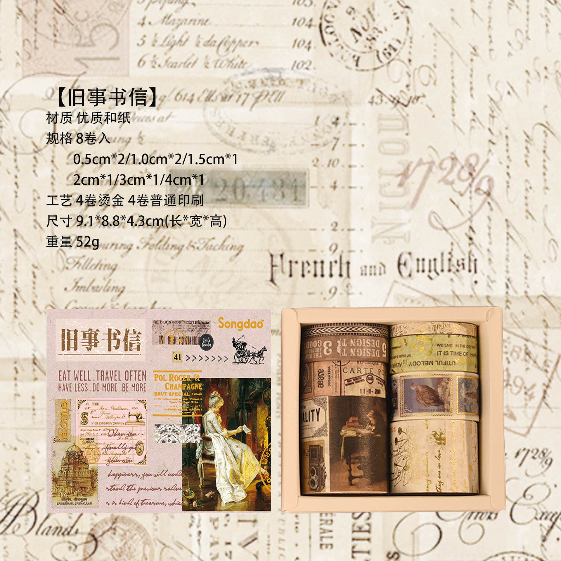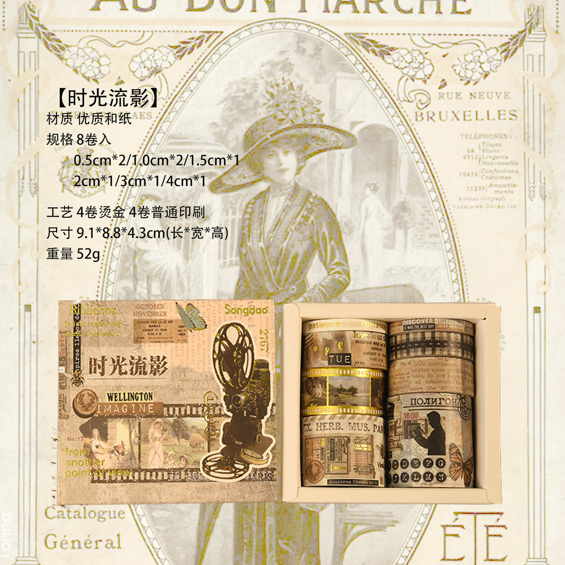 新款流金岁月8卷套装胶带 复古烫金胶带细款和纸胶带多款组合胶带