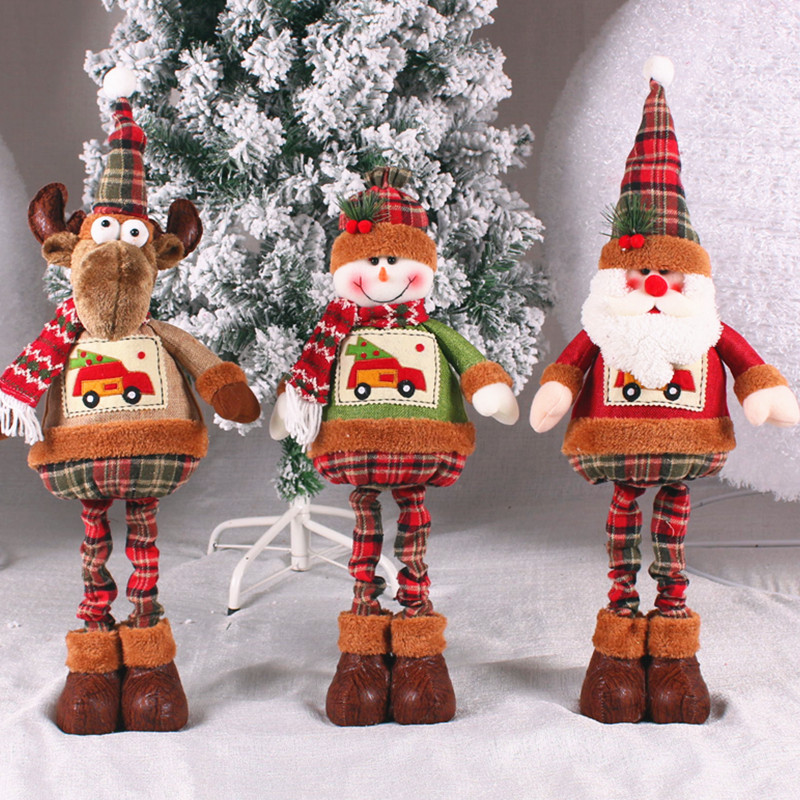 圣诞装饰品老人雪人麋鹿站立公仔伸缩玩偶礼品圣诞树布置礼物摆件