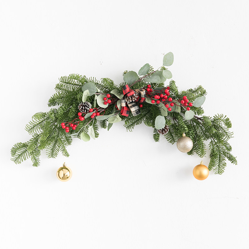 圣诞装饰品藤条松针绿植门挂饰ins吊球门楣墙面橱窗场景布置
