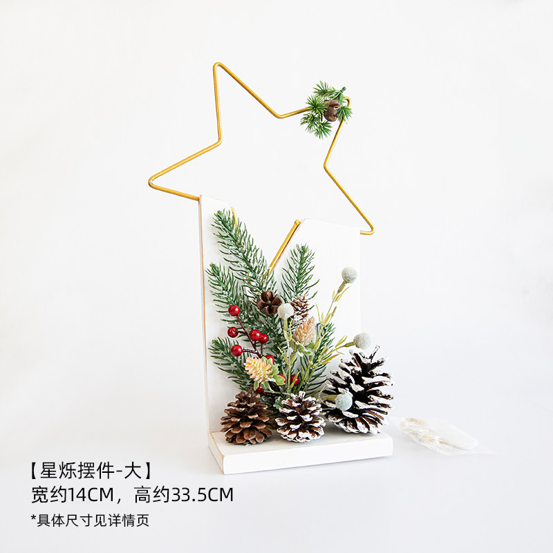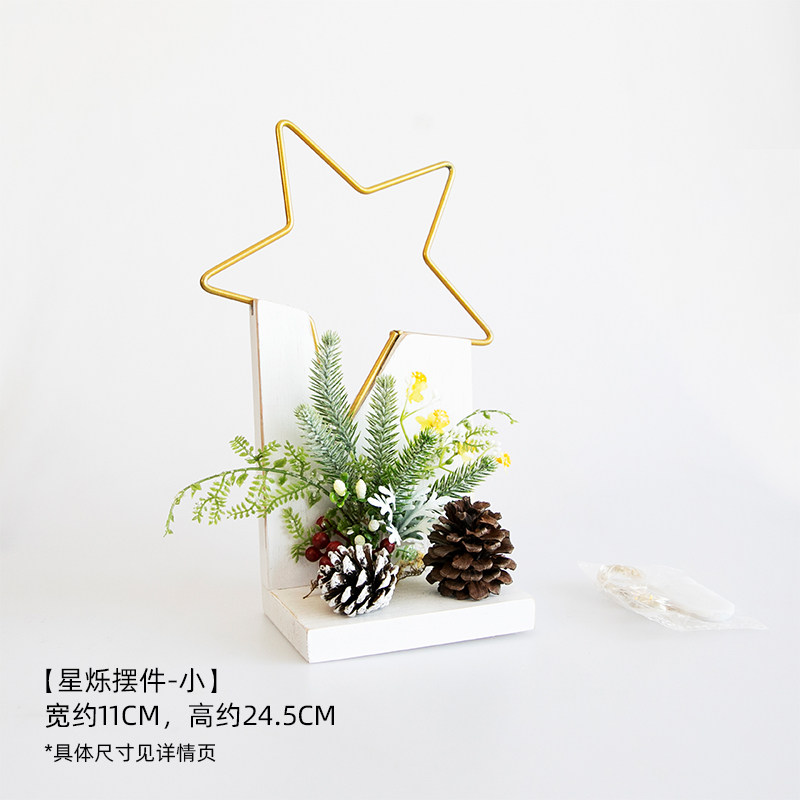 阿楹 圣诞树玄关艺术干花星星摆件 轻奢发光鞋柜松果新年装饰礼物