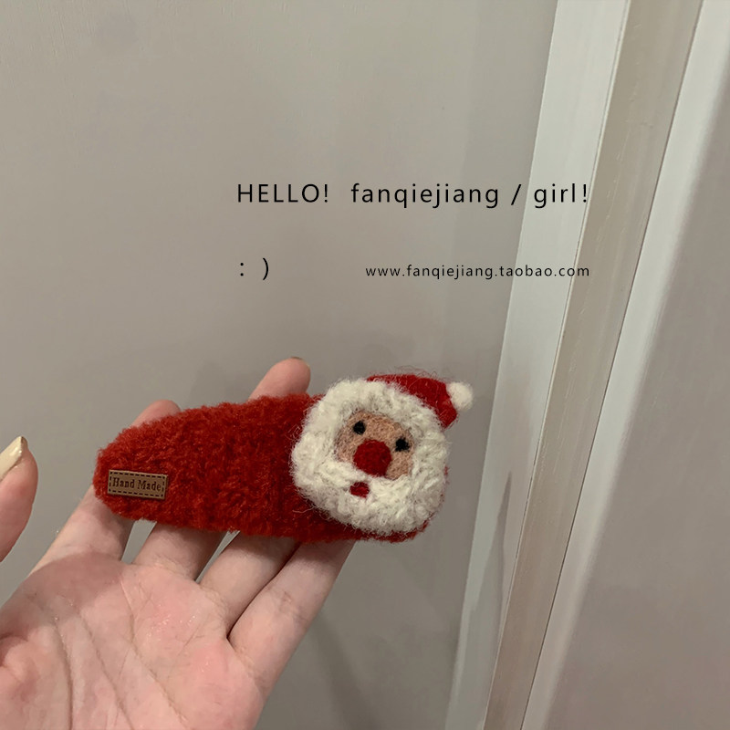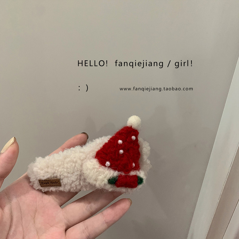 圣诞节羊羔毛茸茸发夹女冬季后脑勺侧边冬天刘海夹子发饰头饰