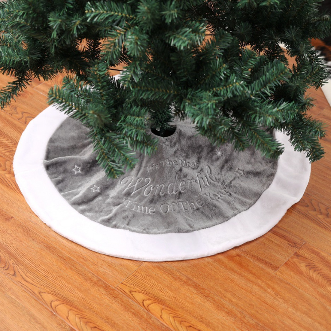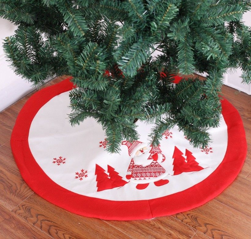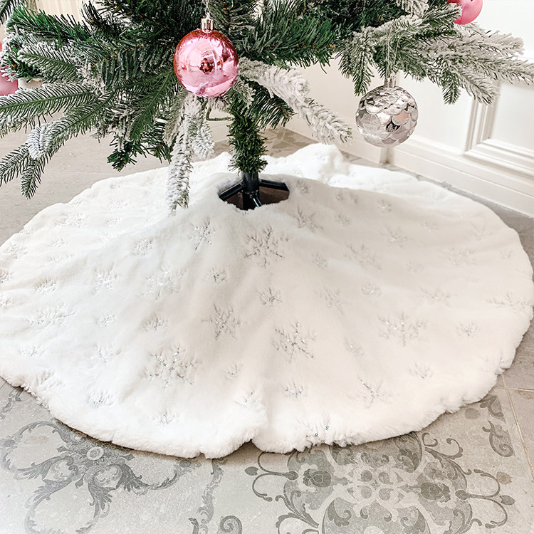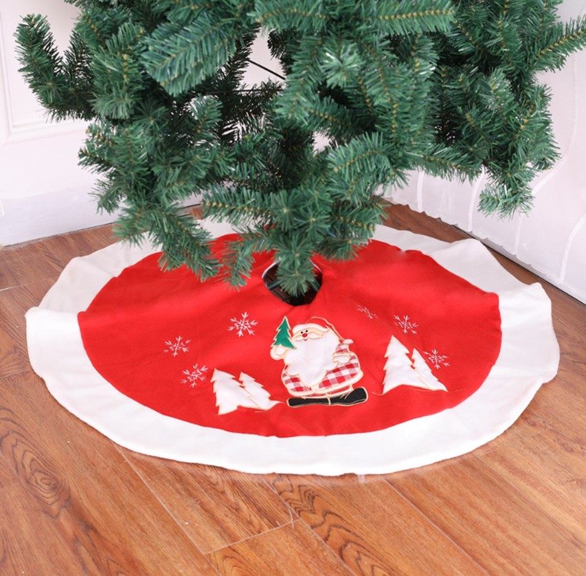 圣诞季店主精选 短毛绒刺绣圣诞树裙 圣诞节装饰品圣诞树底座围裙