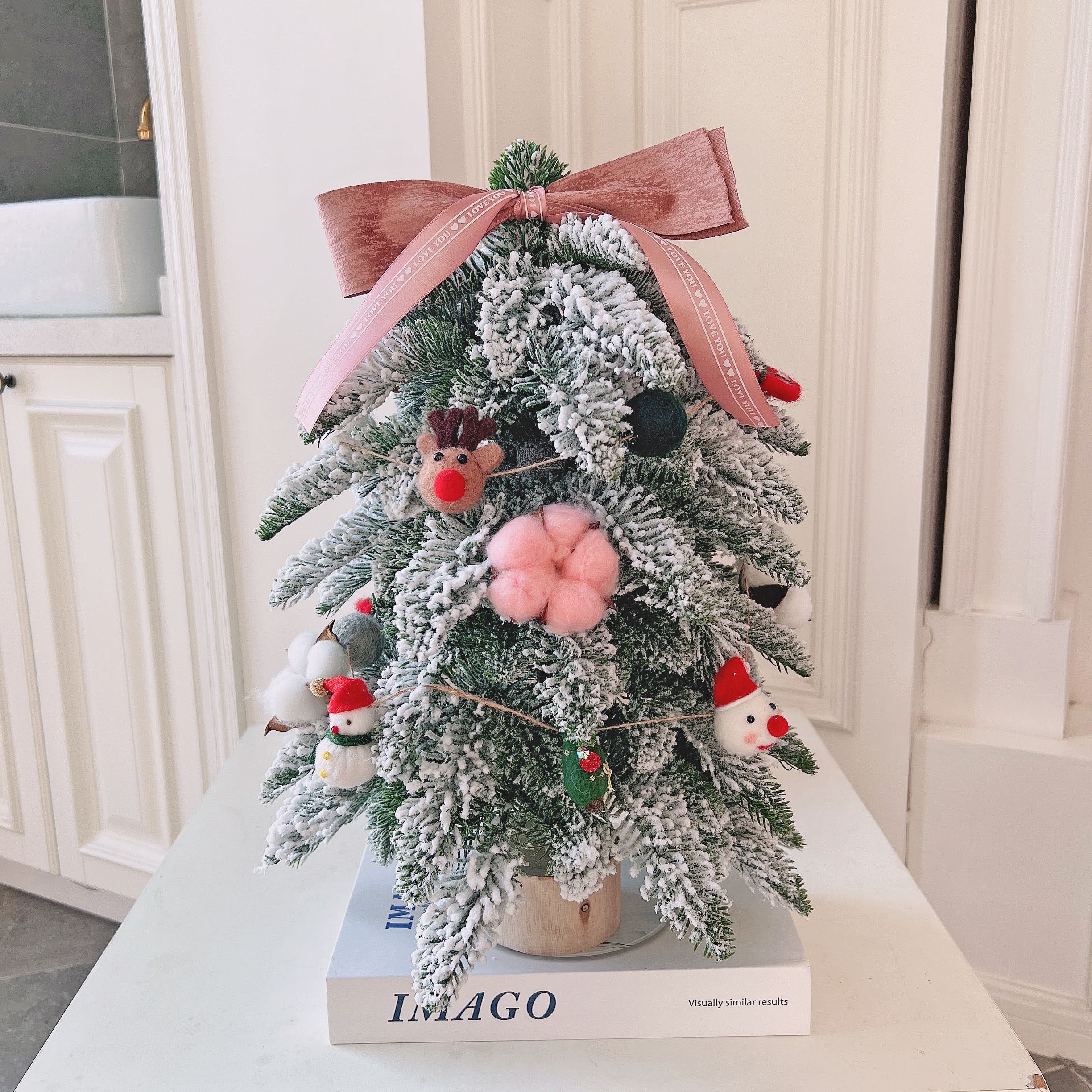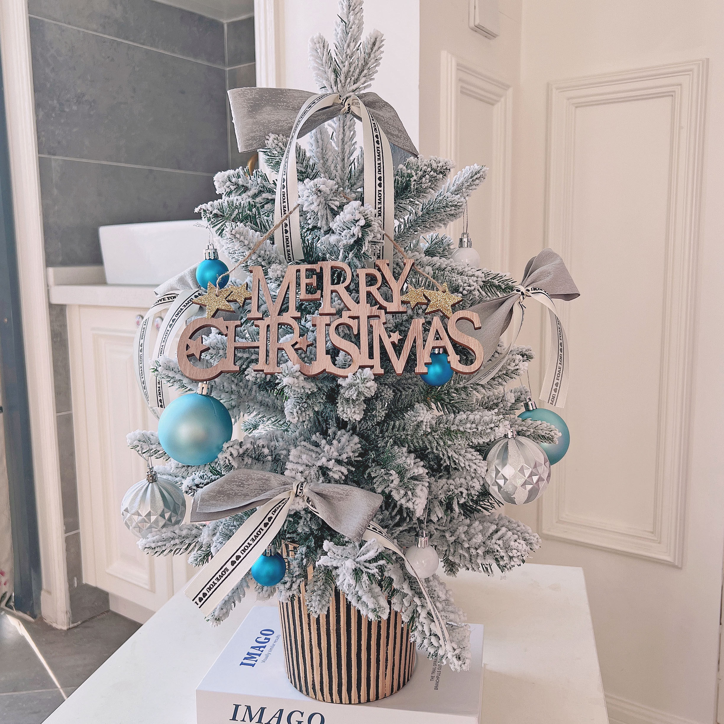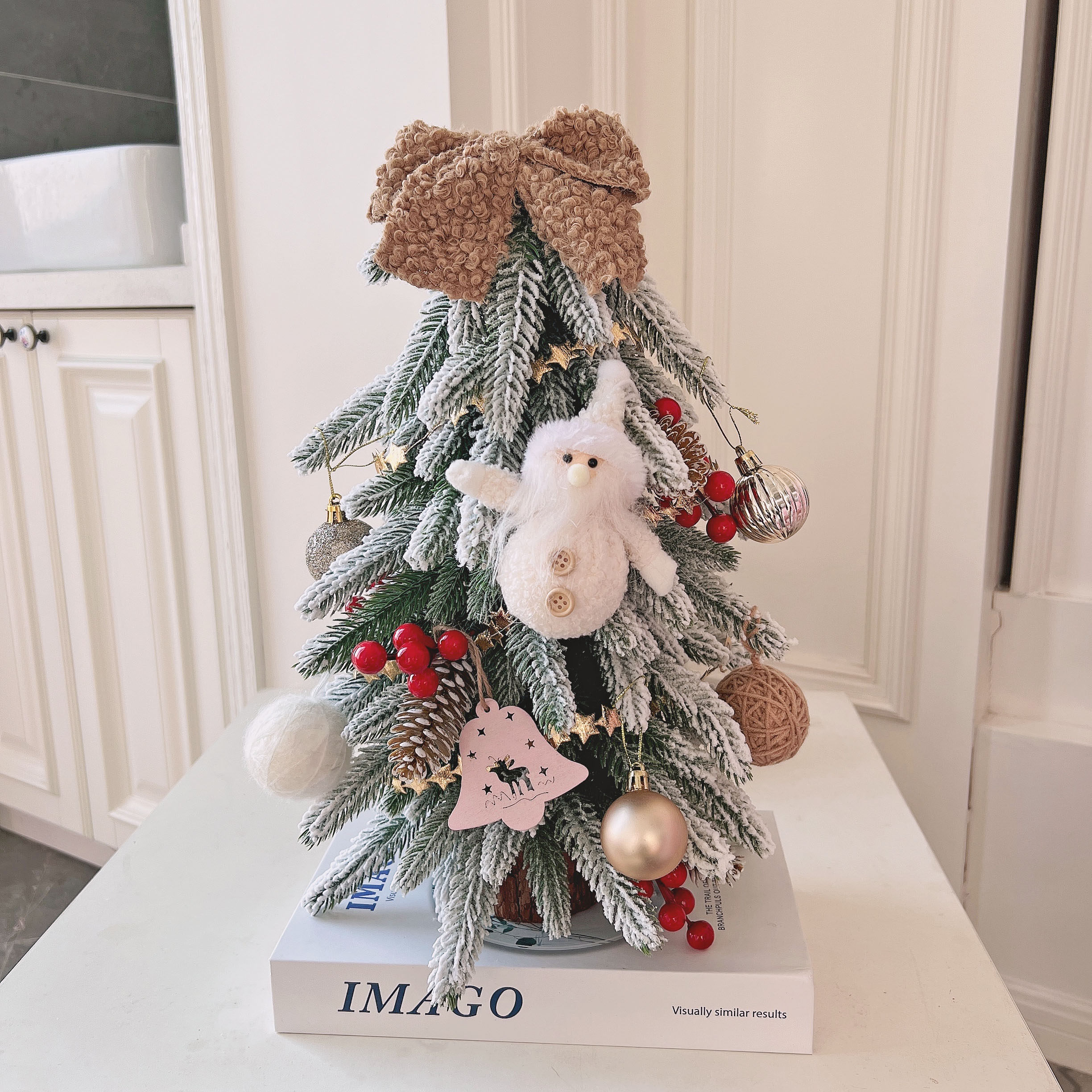 圣诞节装饰品仿真积雪圣诞树家用桌面圣诞树节日场景装饰摆件套餐