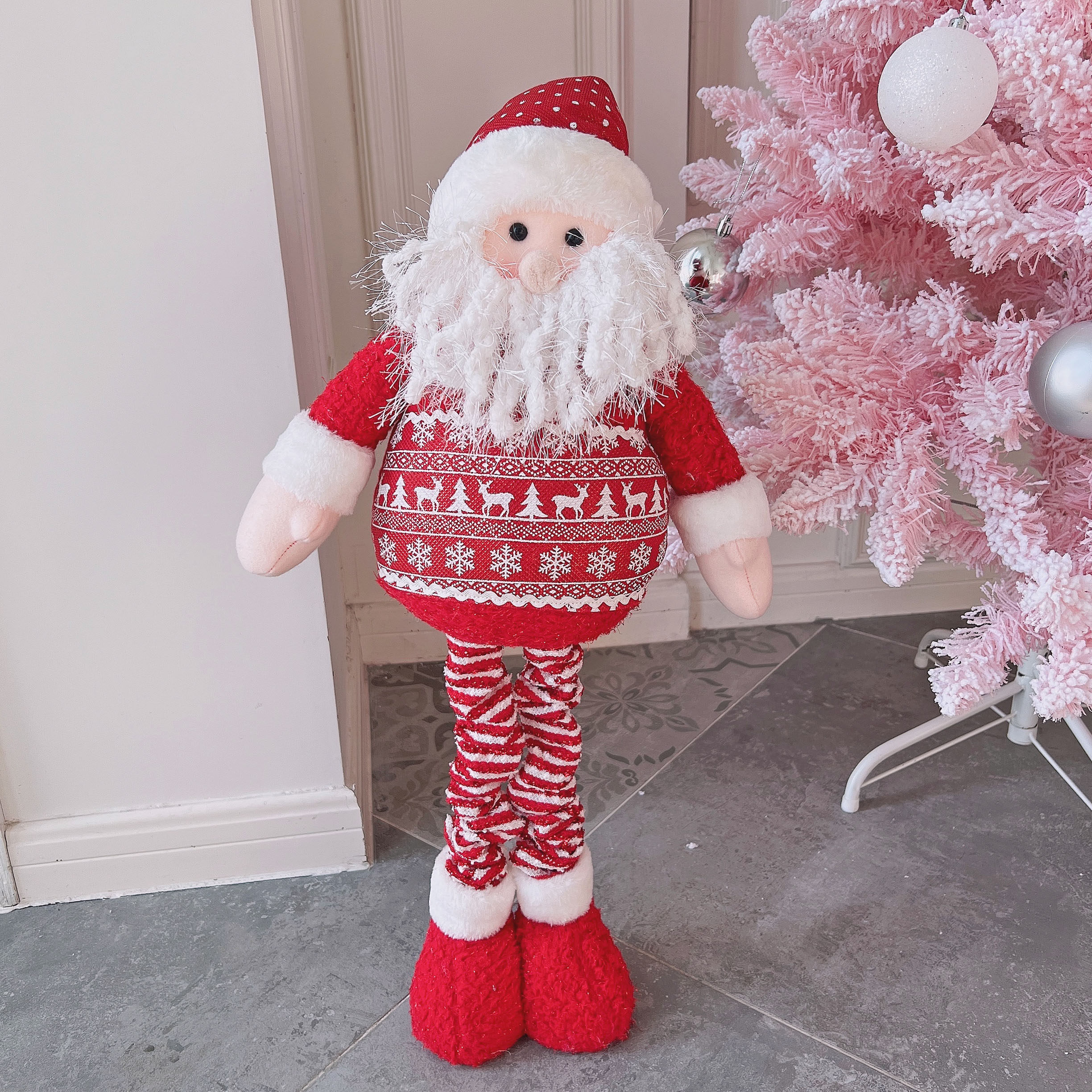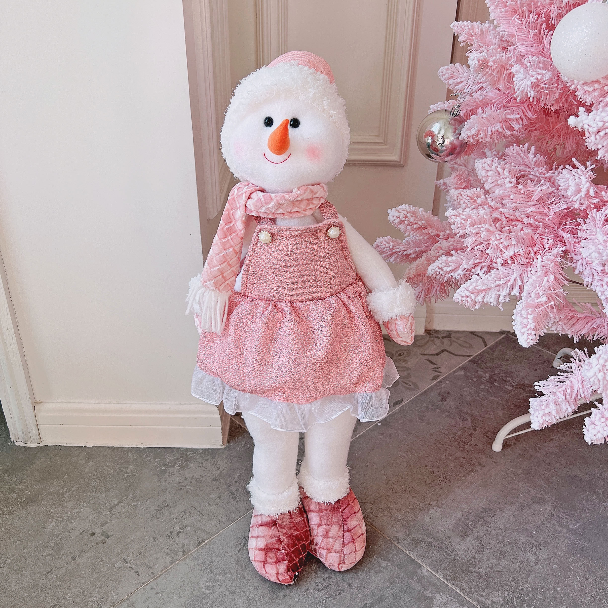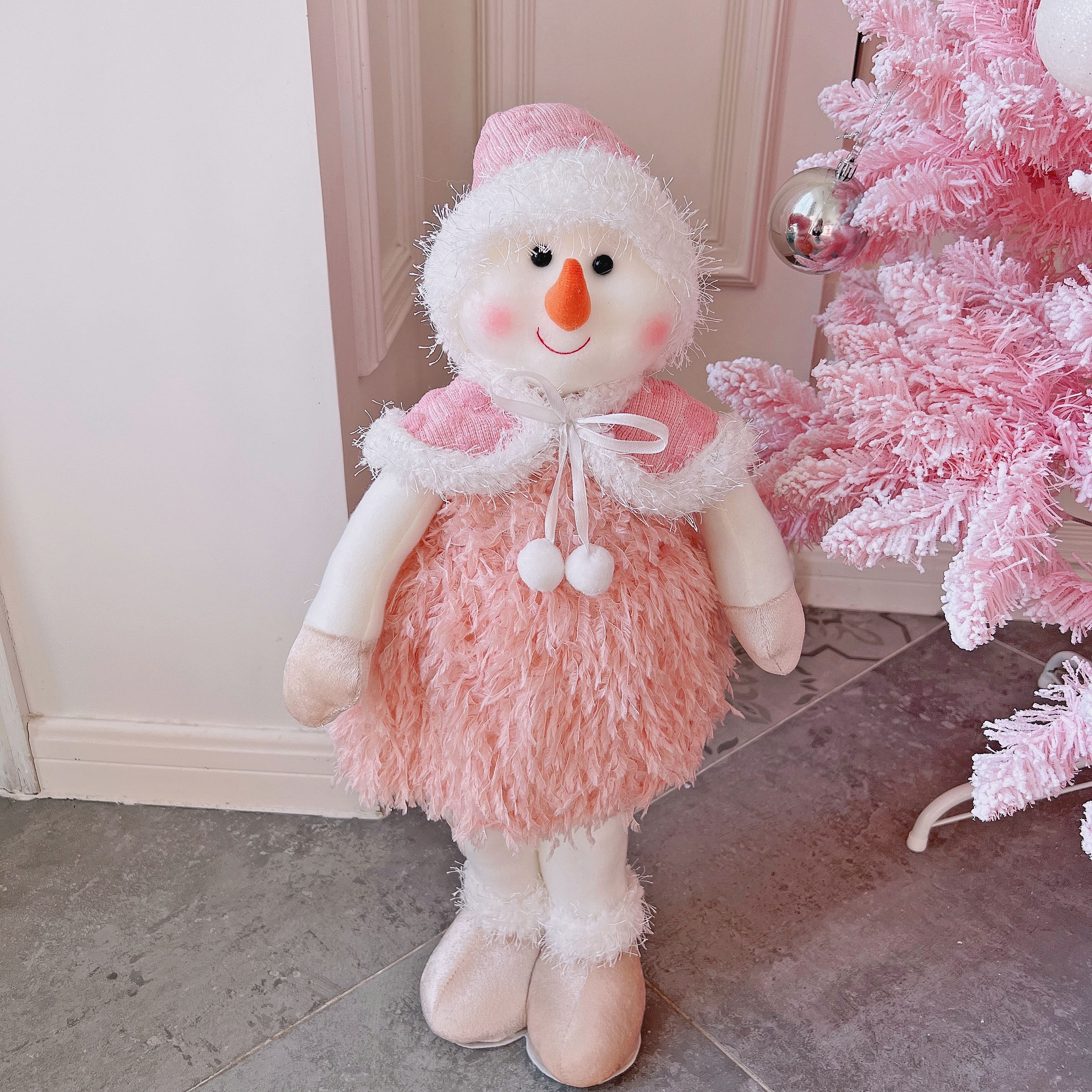 圣诞节橱窗场景布置粉色系圣诞老人雪人公仔娃娃摆件平安夜礼物