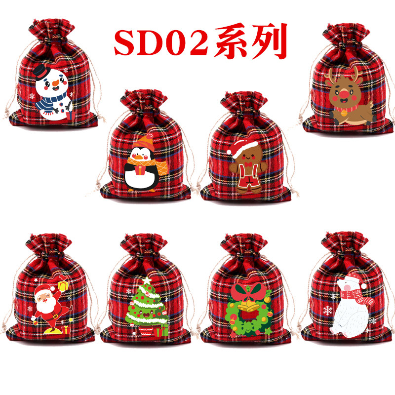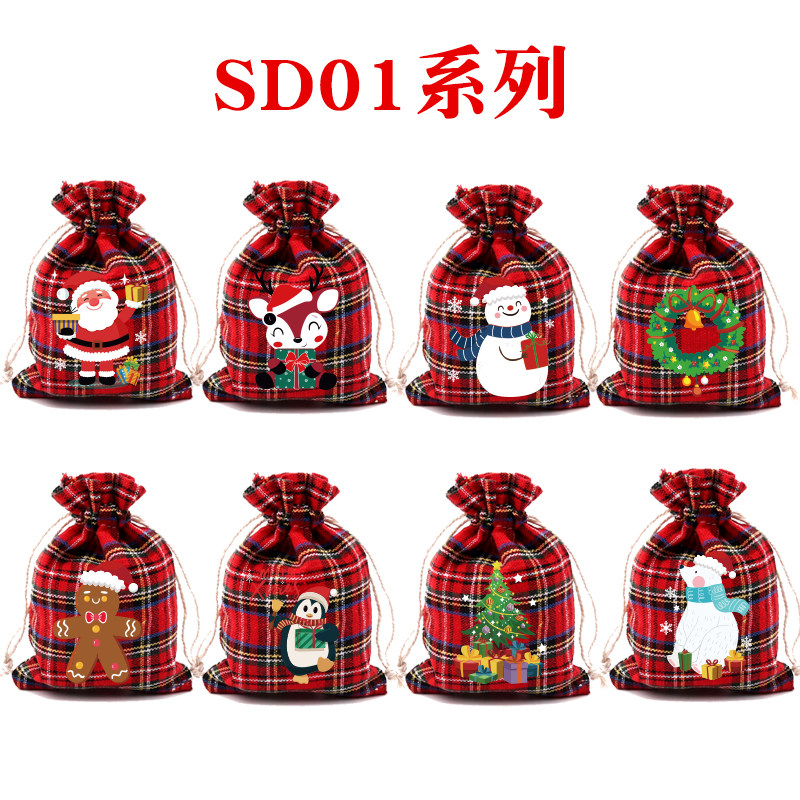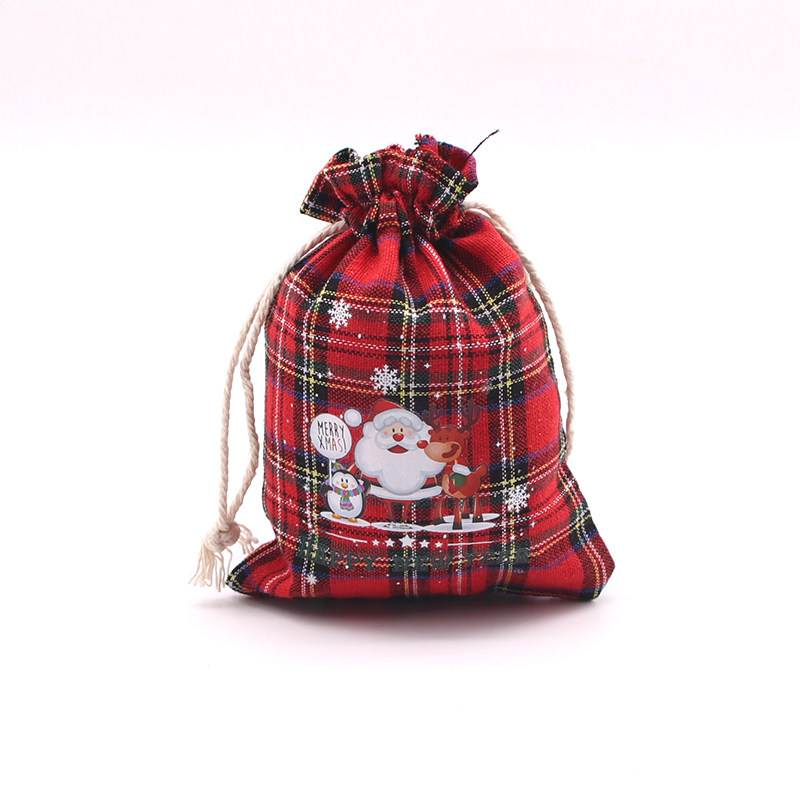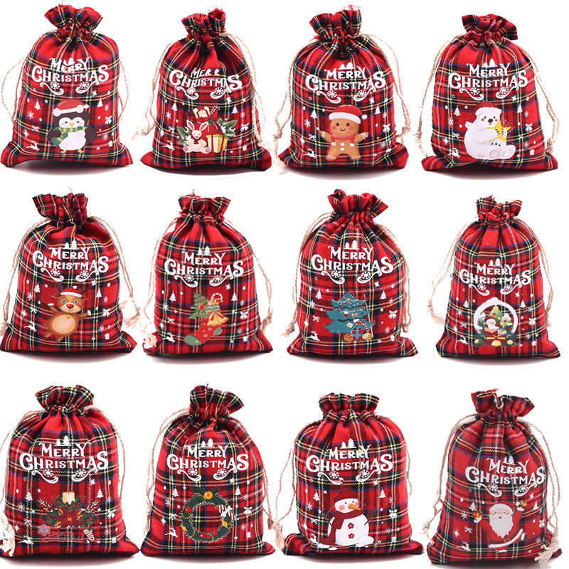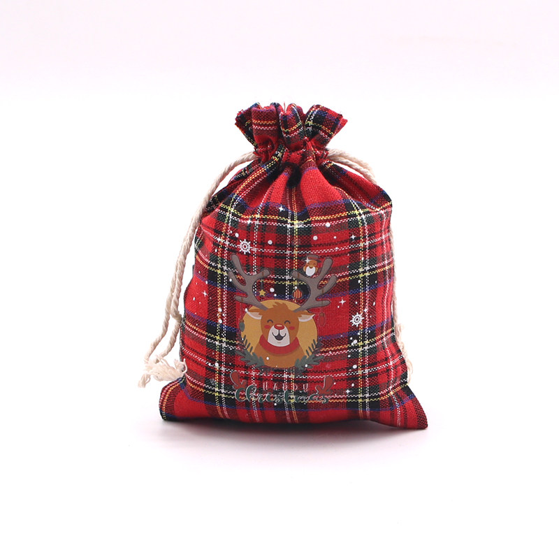 现货圣诞格子棉布袋彩色雪花包装袋降临日糖果袋礼品袋零食礼物袋