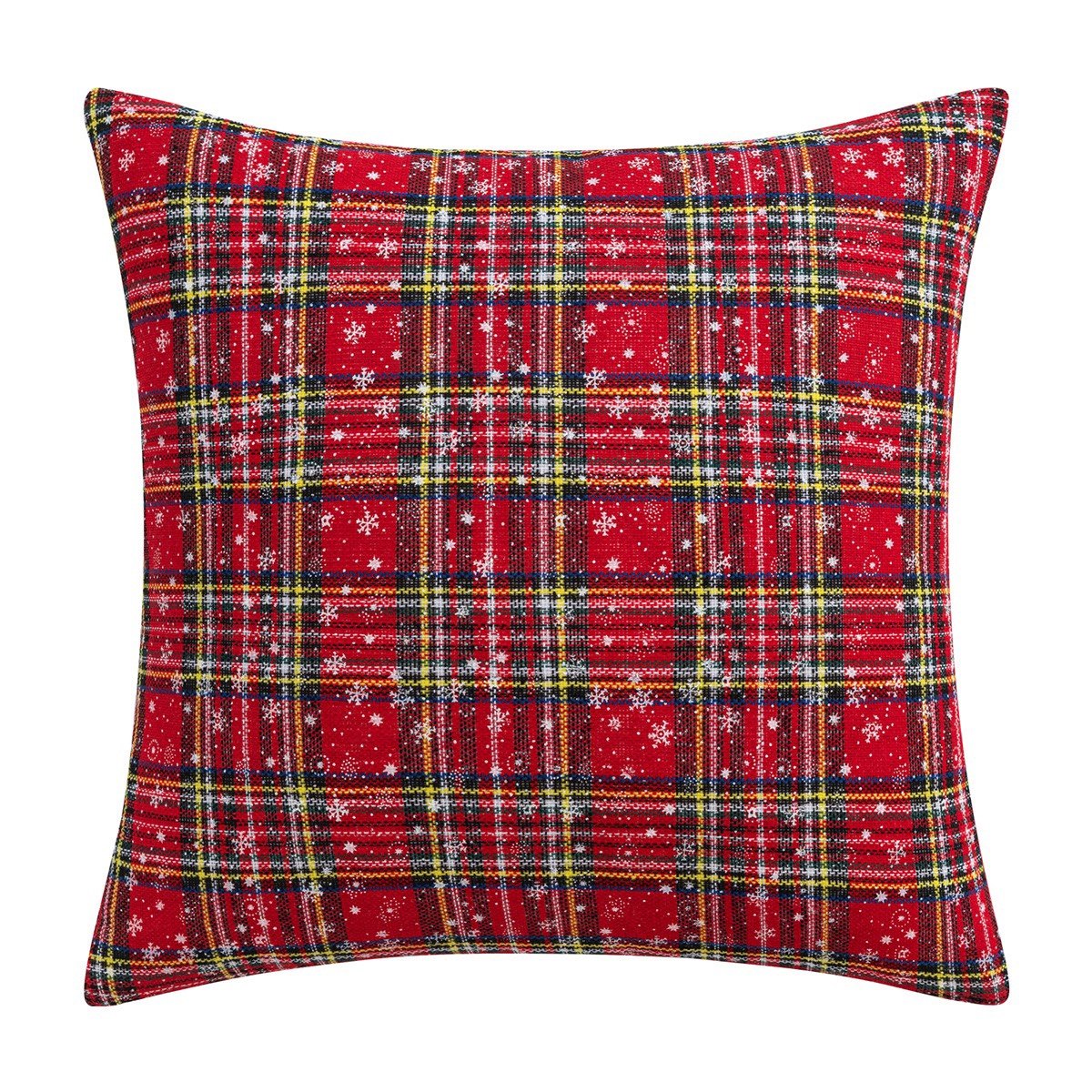 圣诞节格子抱枕红色喜庆枕套雪花抱枕套生日派对装饰复古条纹靠垫