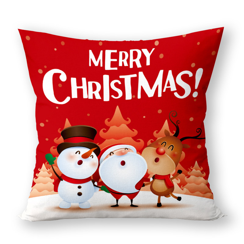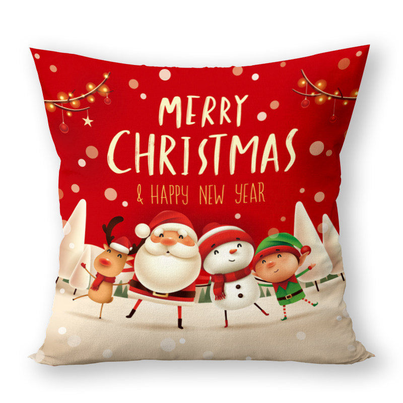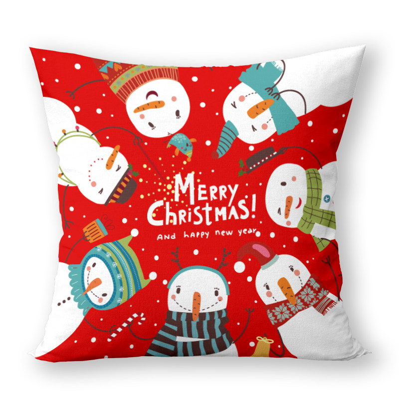 雪人和麋鹿圣诞新年抱枕 双面图案圣诞节礼物可拆洗可爱靠垫枕套