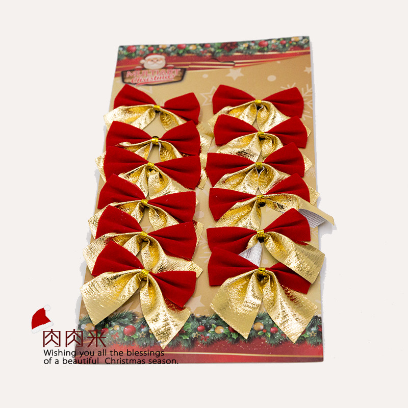 小蝴蝶结圣诞树装饰挂饰圣诞节礼物包装布置金色红色