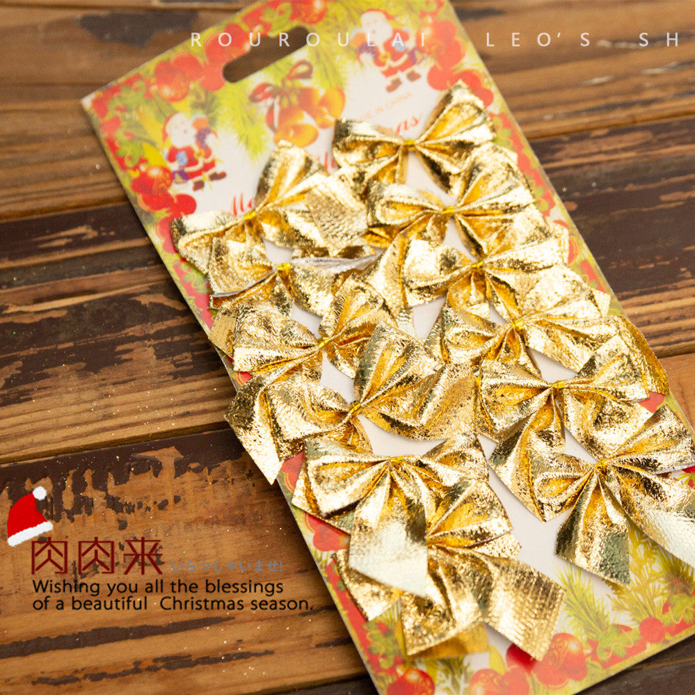 小蝴蝶结圣诞树装饰挂饰圣诞节礼物包装布置金色红色