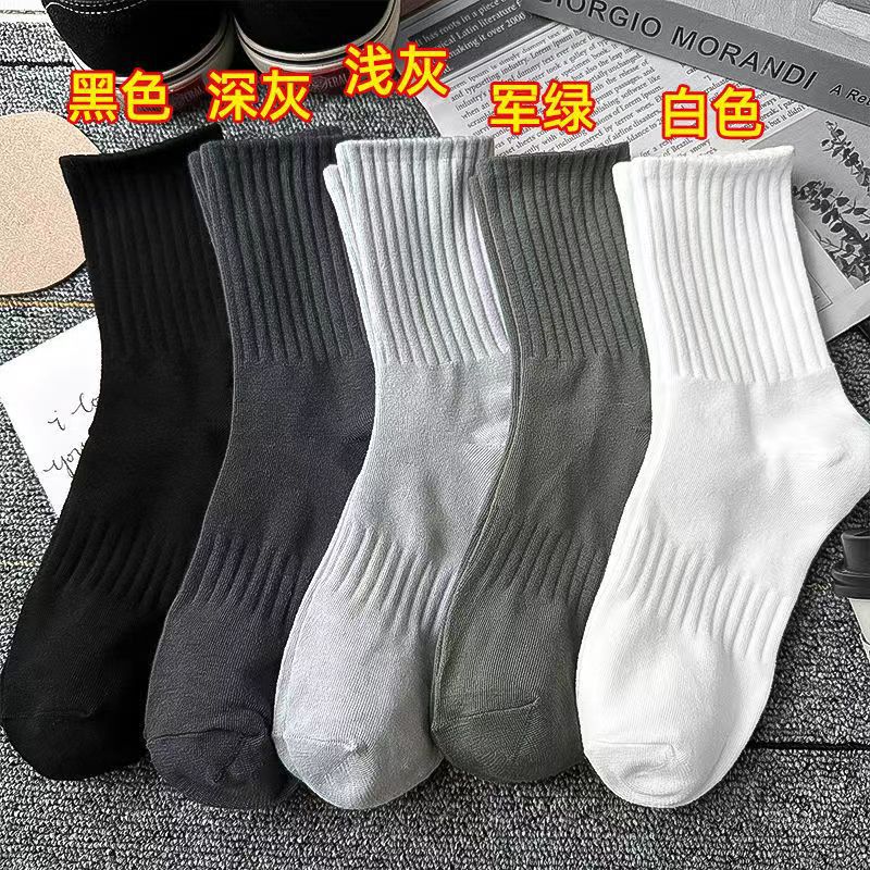诸暨袜子男款中筒纯色秋冬季长筒袜百搭ins潮运动美式高腰长袜