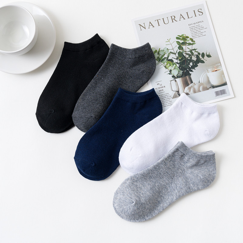 纯棉袜子男士吸汗防臭短筒袜纯黑色夏季薄款透气运动低帮浅口船袜