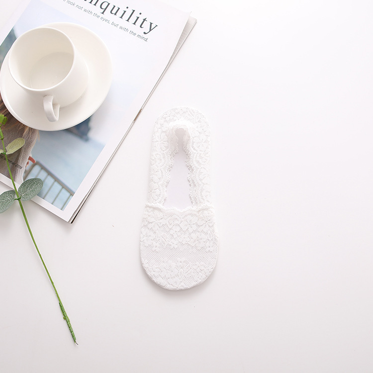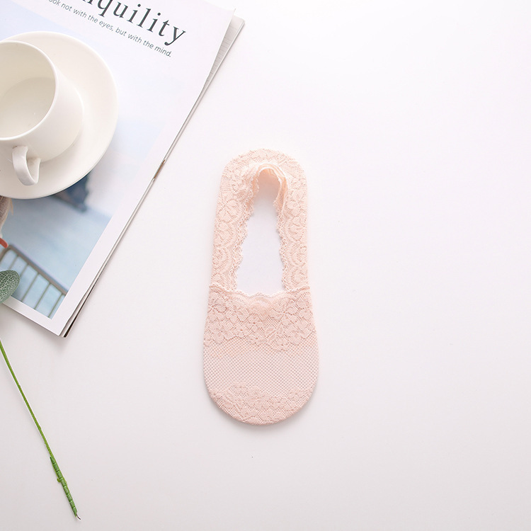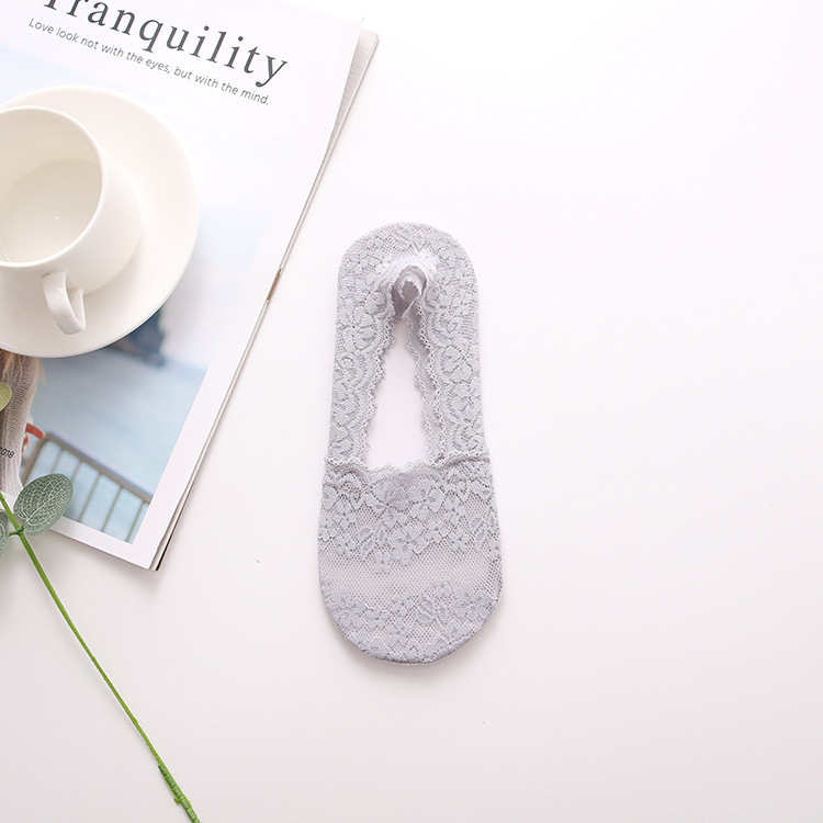 蕾丝袜船袜女防滑不掉跟棉底夏季薄浅口冰丝隐形硅胶高跟鞋ins潮