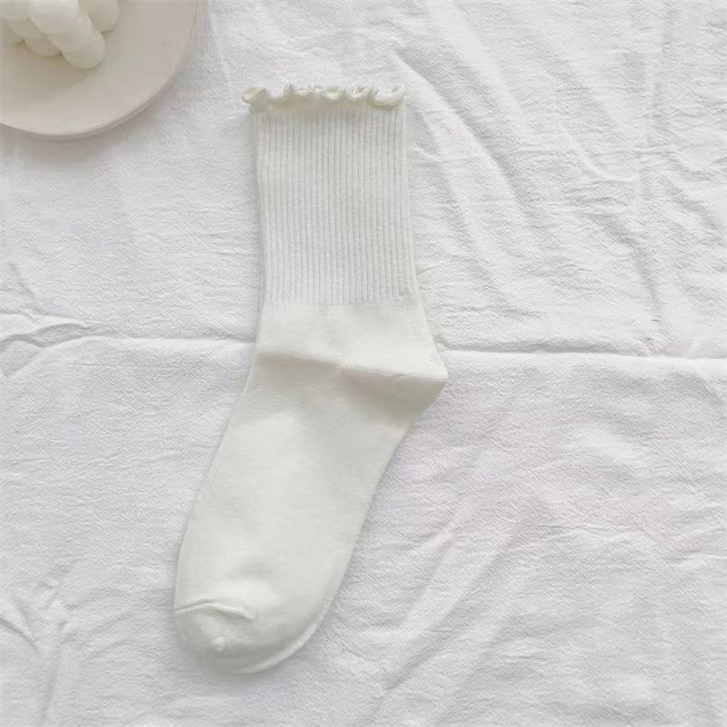 木耳边袜子女花边中筒袜长袜薄款jk荷叶韩国日系女夏季白色堆堆袜