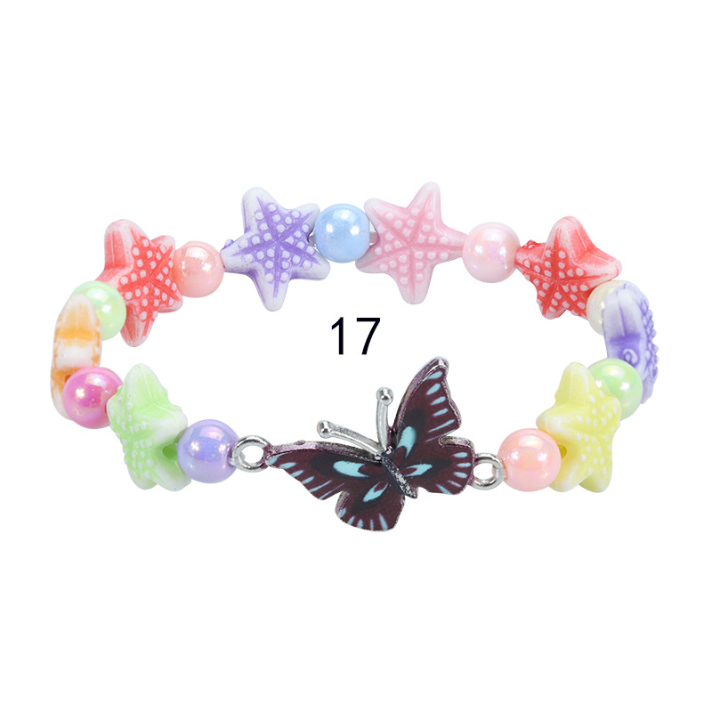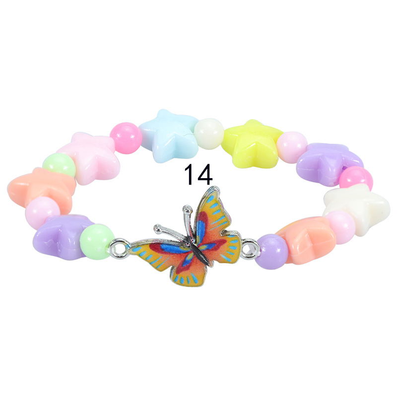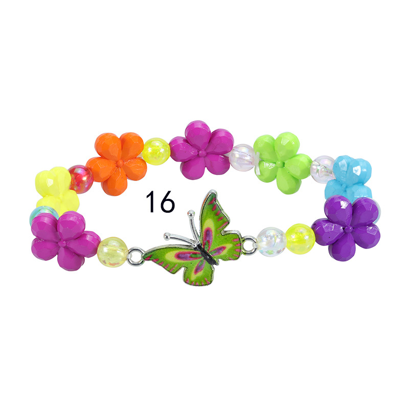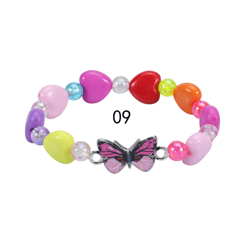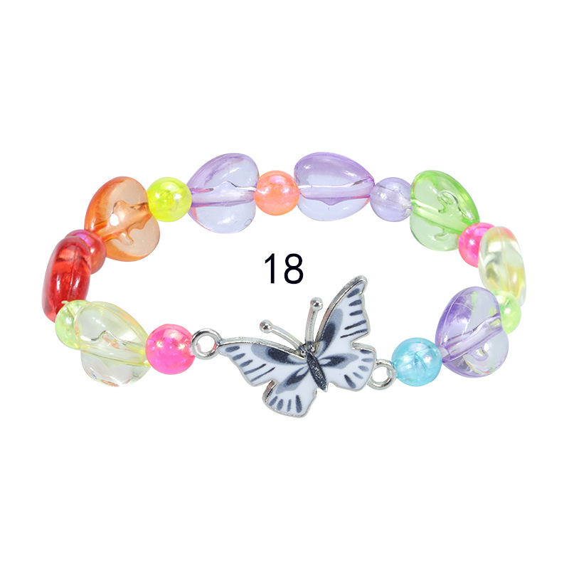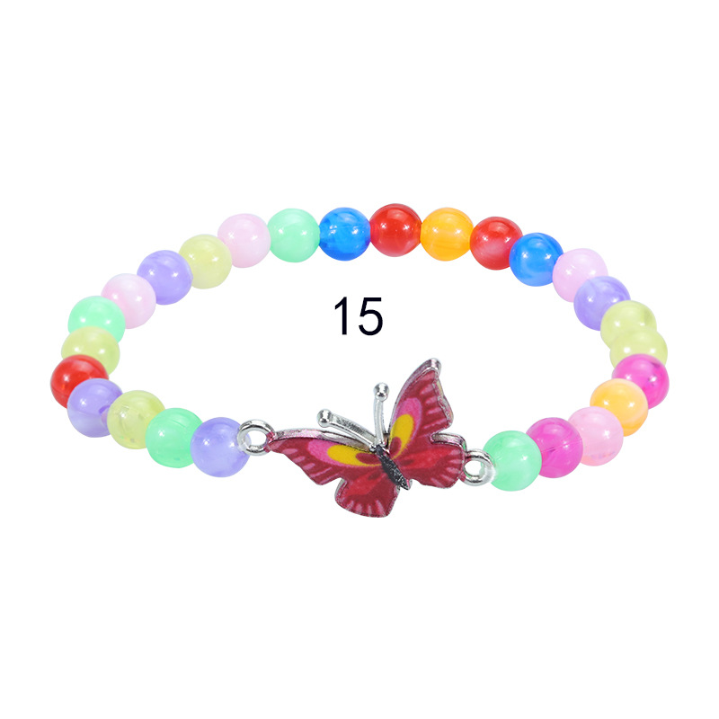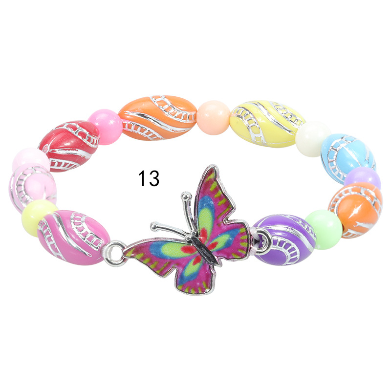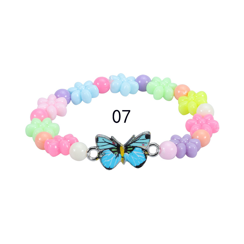 跨境新款彩色串珠儿童手链可爱女孩七彩蝴蝶手串幼儿园生日礼物