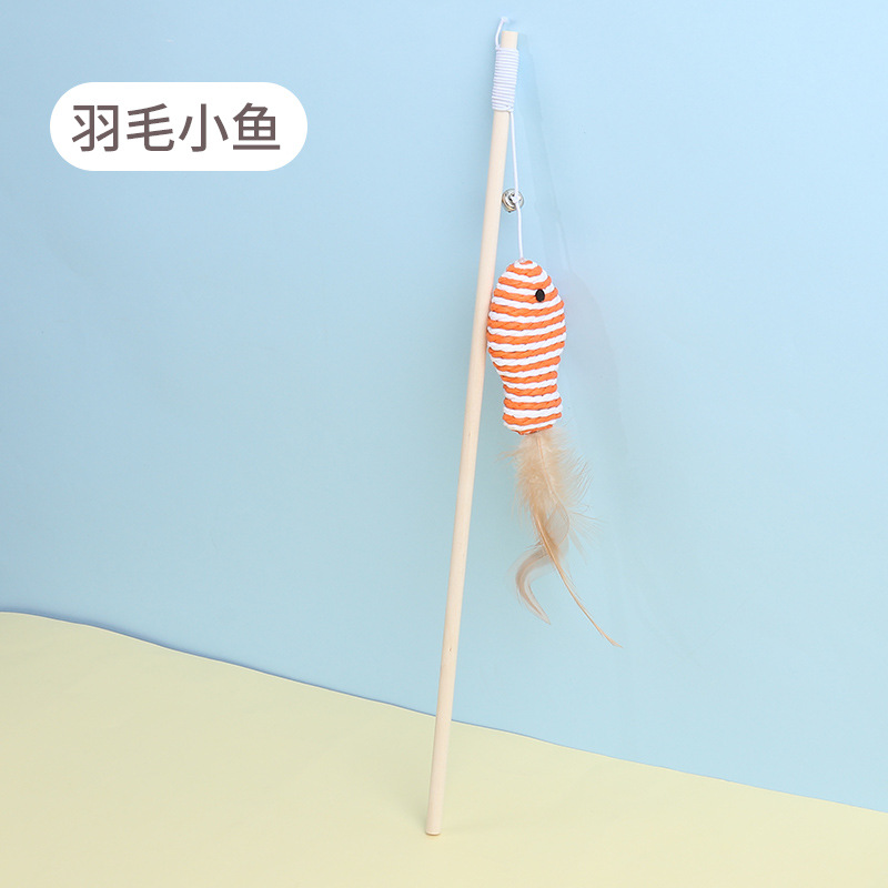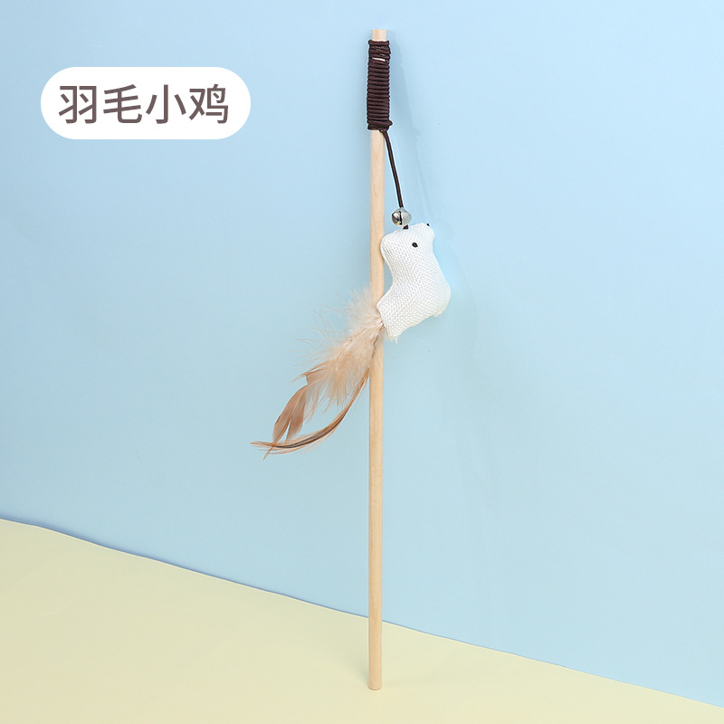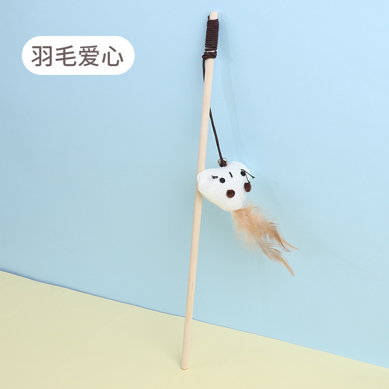 厂家现货新款老鼠木质逗猫杆猫玩具宠物用品 羽毛铃铛木杆逗猫棒