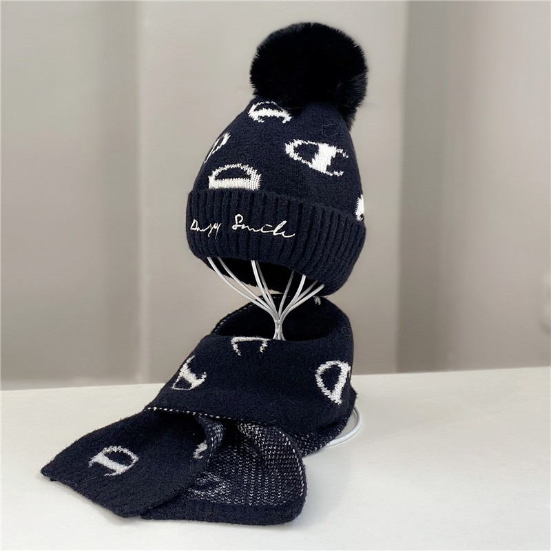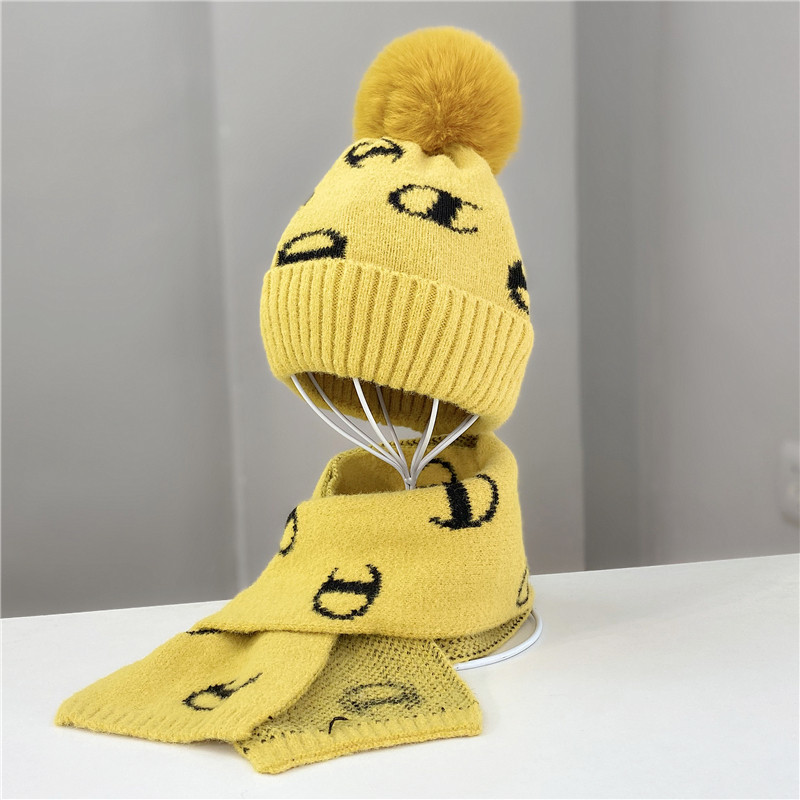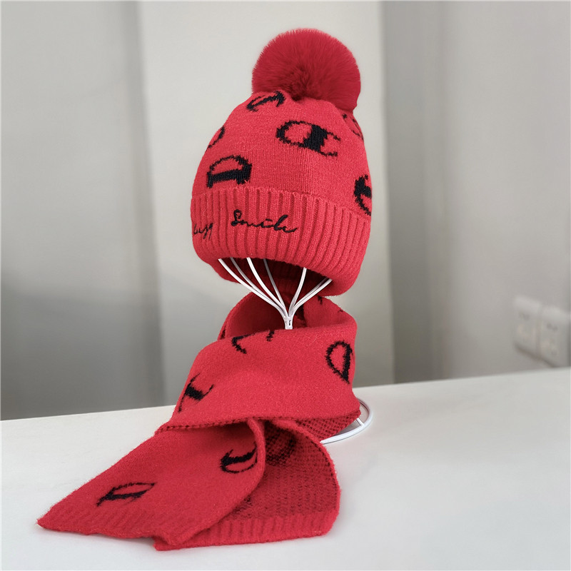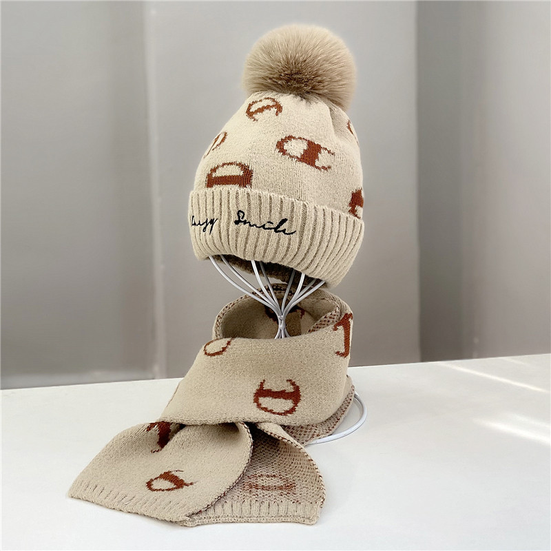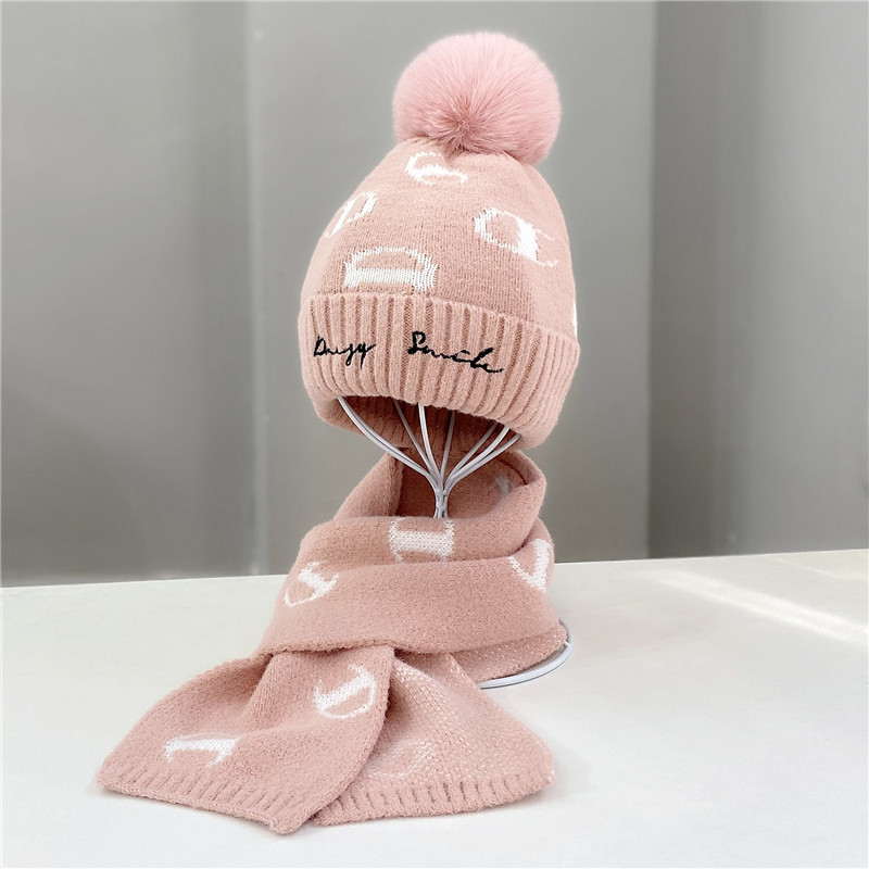冬季儿童毛线针织帽两件套男女休闲护耳毛球加厚保暖帽子围巾套装