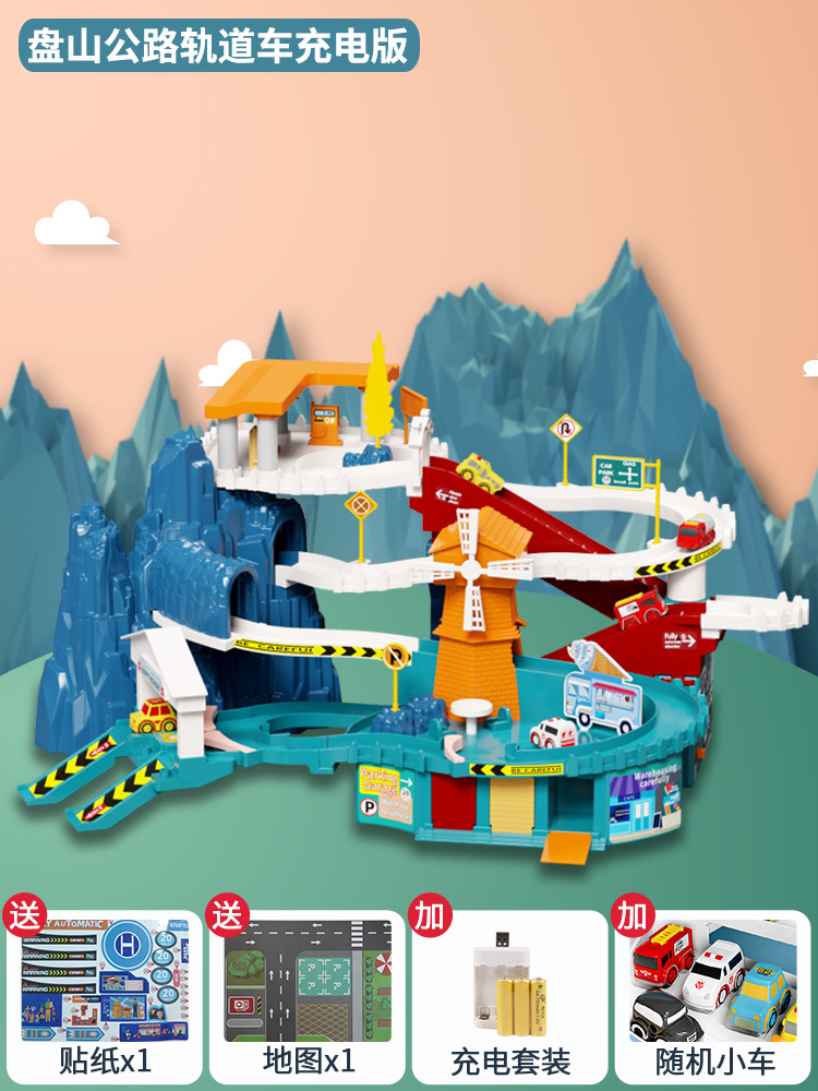 儿童闯关大冒险男孩玩具汽车大楼停车场益智小火车轨道车3岁4抖音