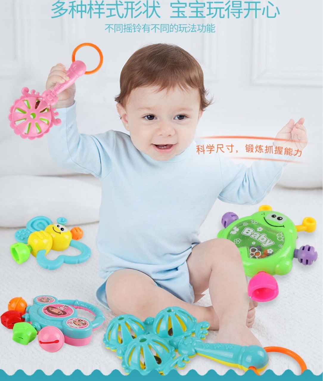 【粉】 眨眼不倒翁+软胶叮当球+单头摇铃