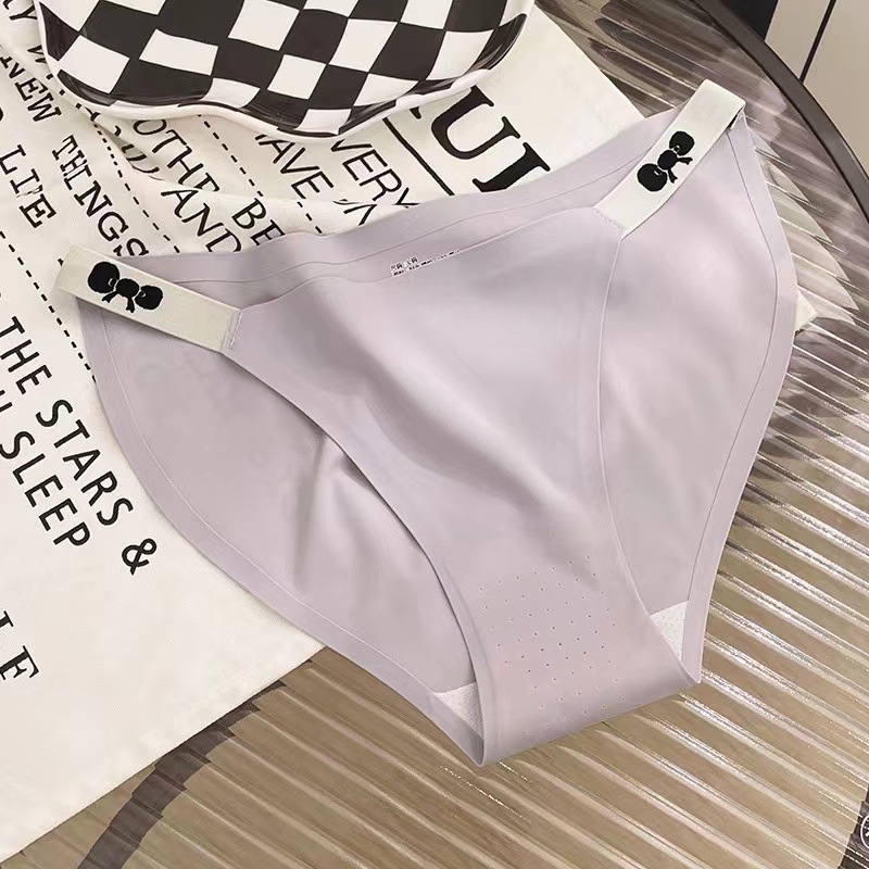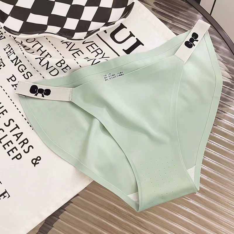 纯欲轻奢甜美风冰丝少女速干丁字裤蚕丝透气裆提臀三角女士内裤