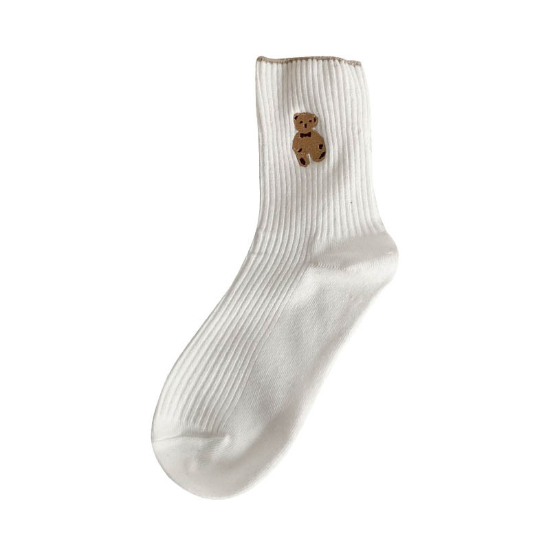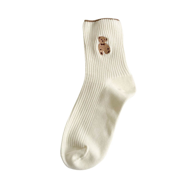 袜子女中筒袜秋季新款日系学院风泰迪小熊袜韩版ins潮百搭jk长袜