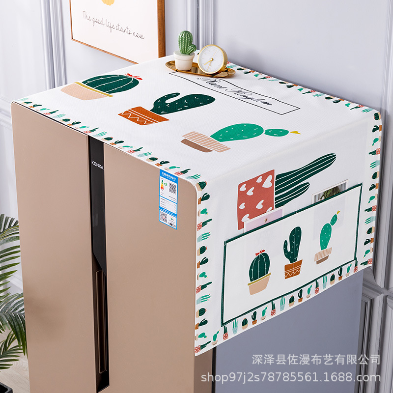 厂家直销卡通绿植简约冰箱巾防尘罩防水盖巾一件代发亚马逊出口