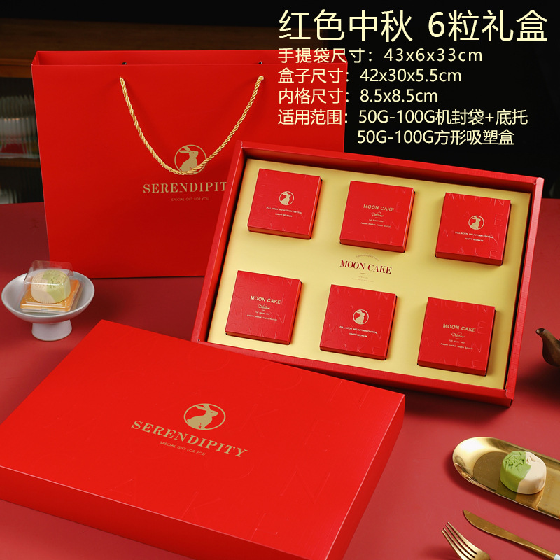 6粒-红色中秋礼盒+手提袋