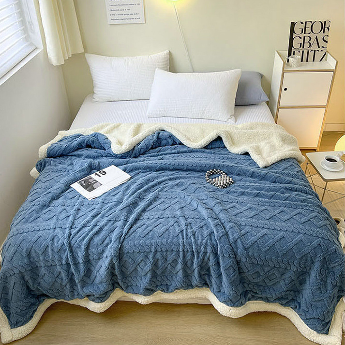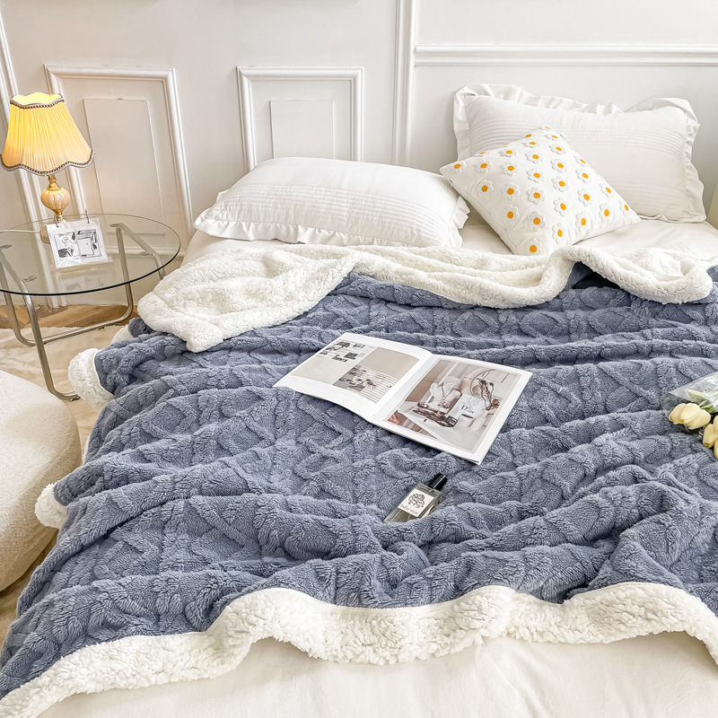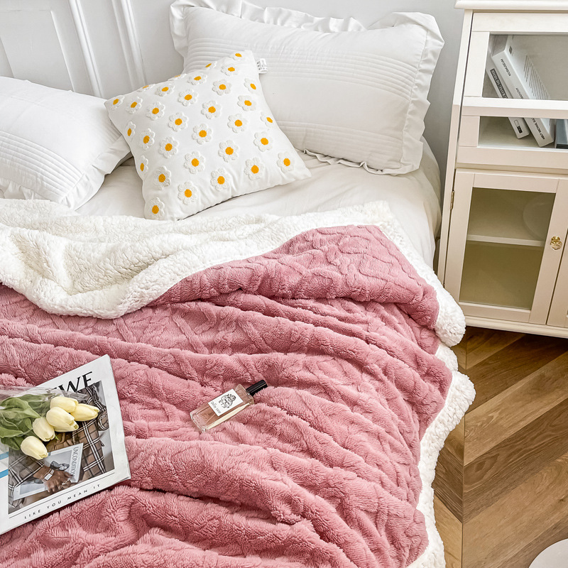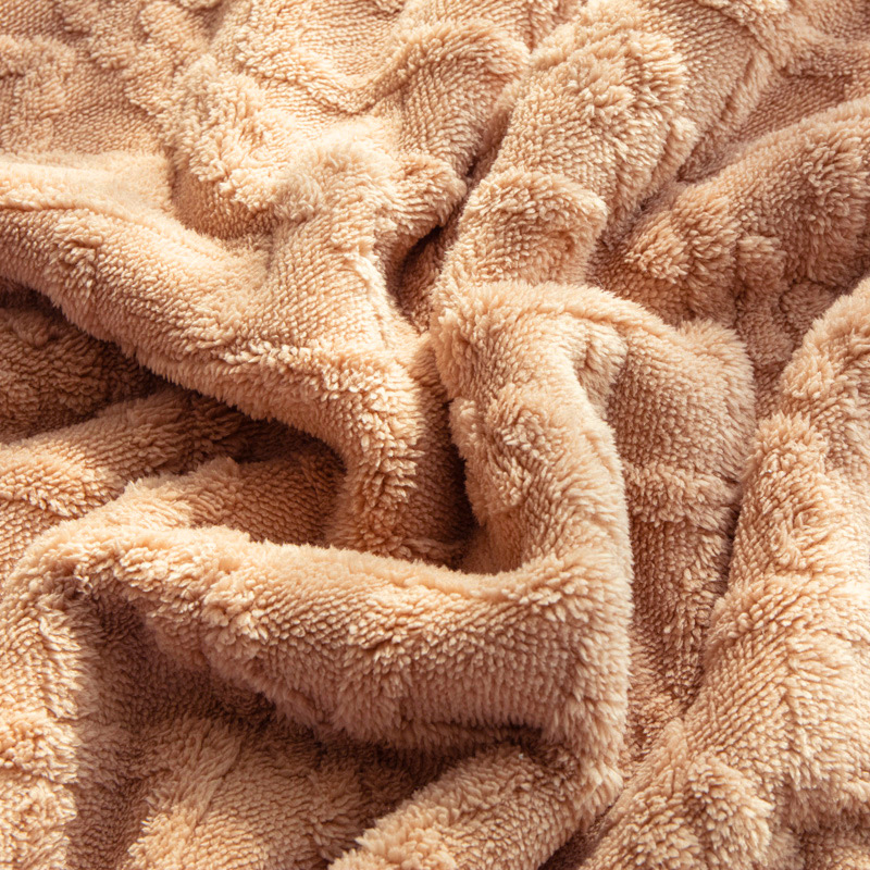 双层柔软保暖畅销简约纯色3D提花菱格四季塔芙绒毛毯春夏午睡盖毯