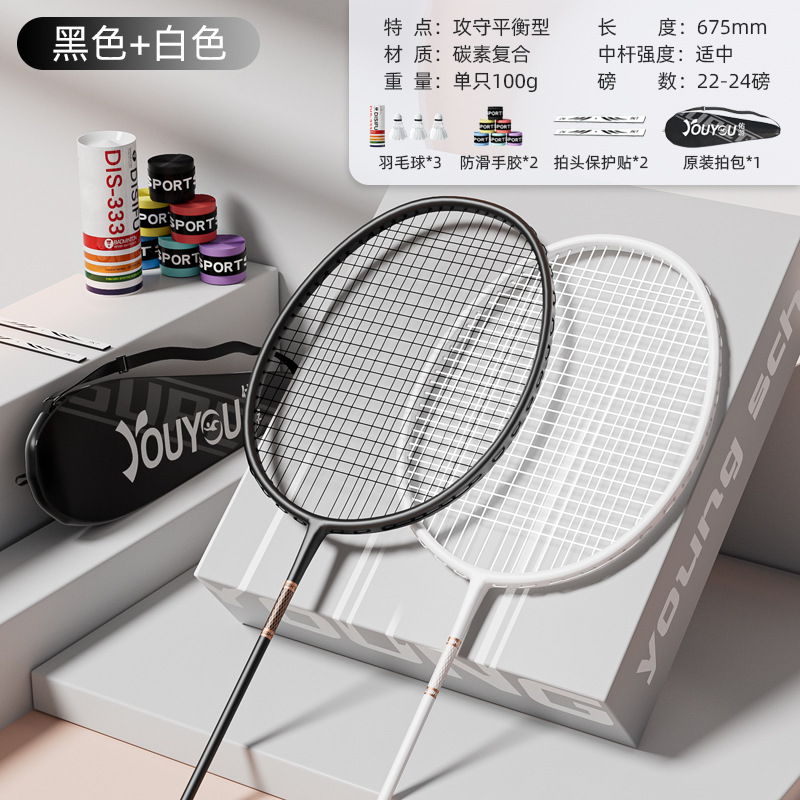 羽毛球拍单双拍轻便碳素正品男女成人学生进攻耐用型儿童球拍套装