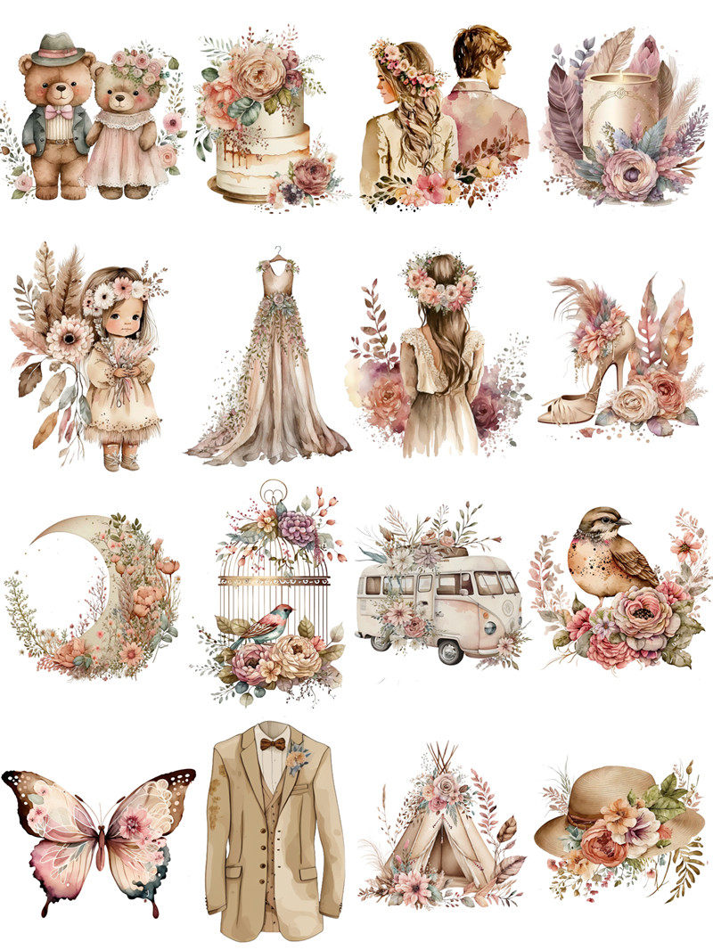 junkjournal复古手账贴纸装饰 手帐贴纸 波西米亚婚礼