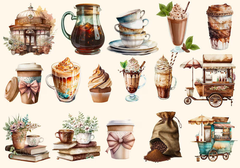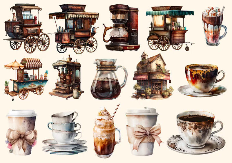 junkjournal复古手账贴纸装饰 手帐贴纸 复古咖啡屋