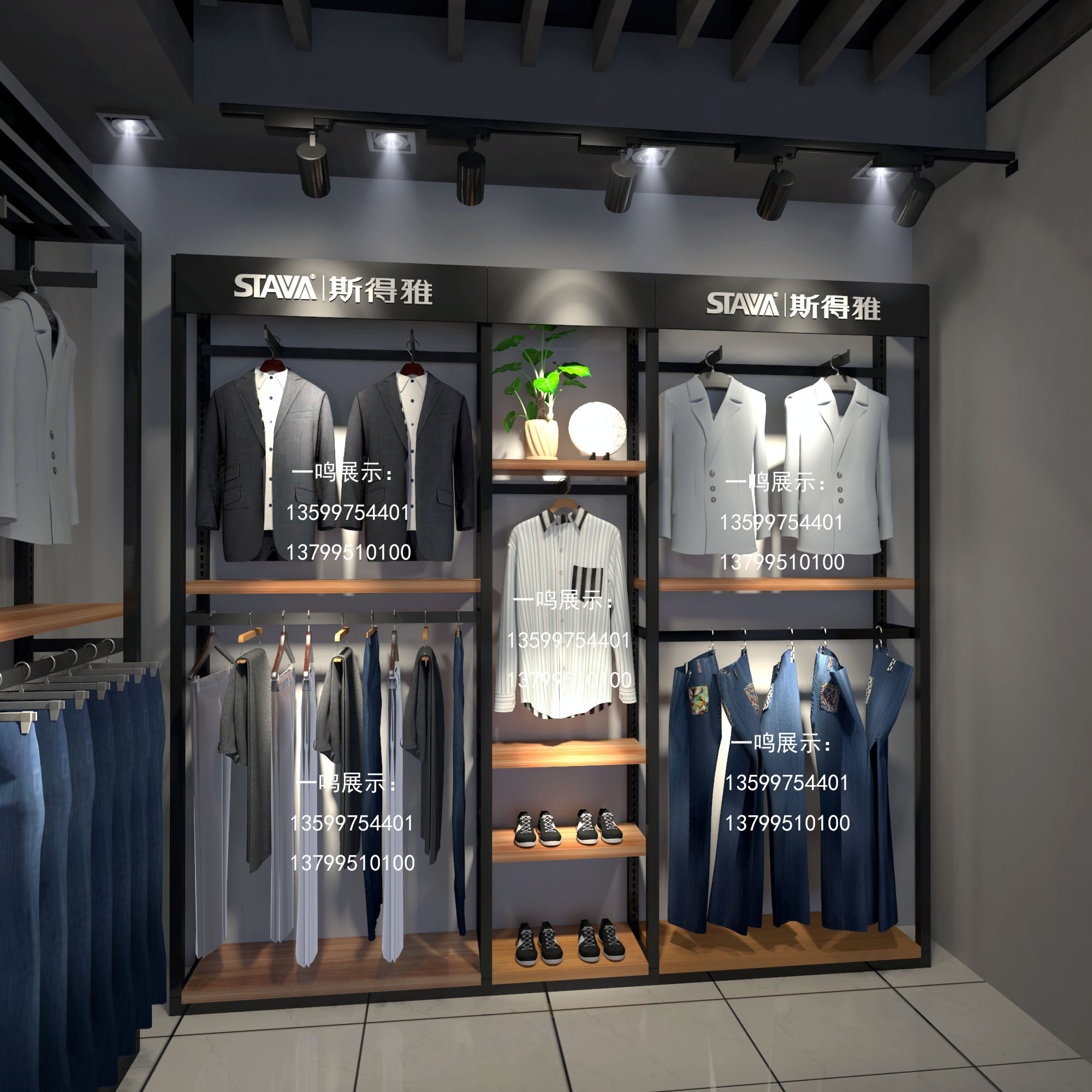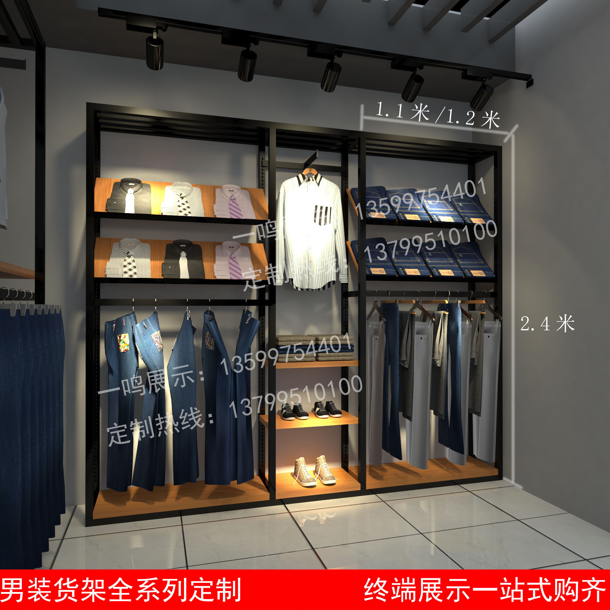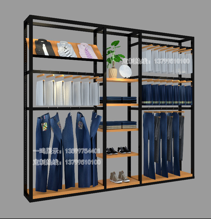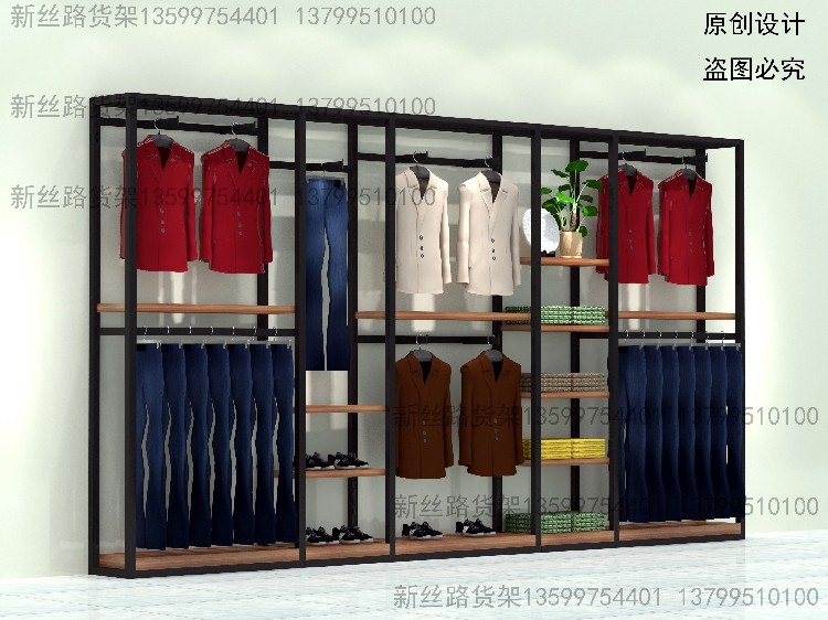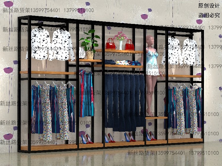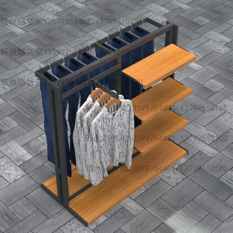 男装货架落地架时尚靠墙架服装店展示架陈列柜女装挂衣架高档双层