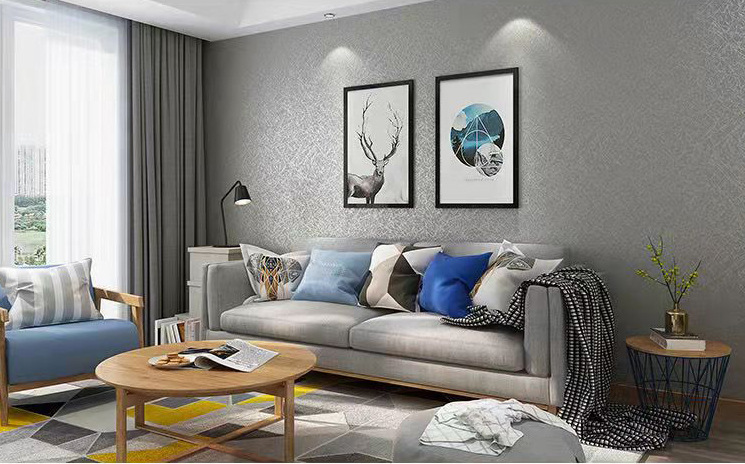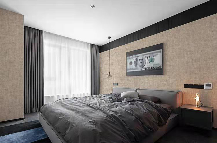 批发加厚亚麻墙布无缝家装工程壁布无纺卧室素色纯色轻奢墙纸厂家