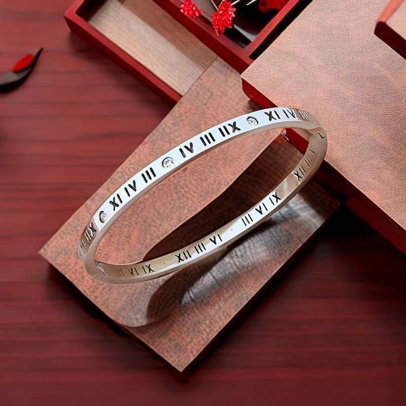 钛钢手镯女夏女生小众高级感电镀不掉色圆圈手镯开口不锈钢手饰