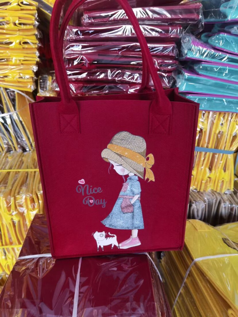 新款手提毛毡包伴手礼包加厚大容量时尚学生作业包可爱淑女收纳包