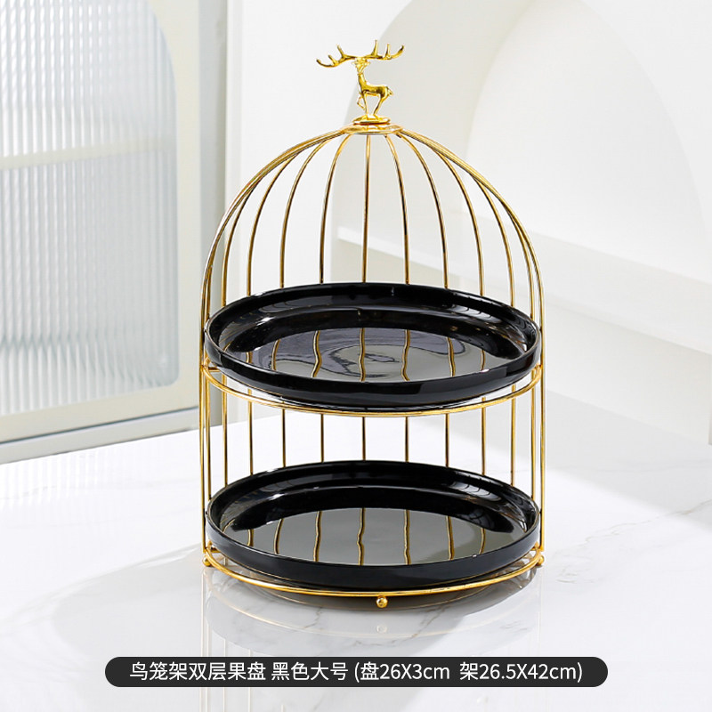 鸟笼架双层 黑色浅盘大号