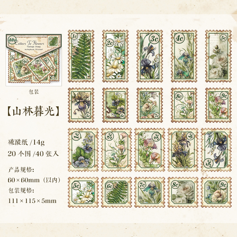 花信邮记系列贴纸 复古硫酸纸邮票手账装饰素材拼贴画