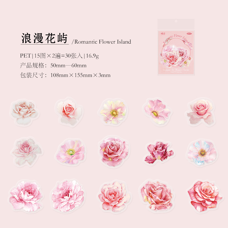 花间梦境系列PET贴纸包复古梦幻水彩花卉PET防水手帐装饰拼贴