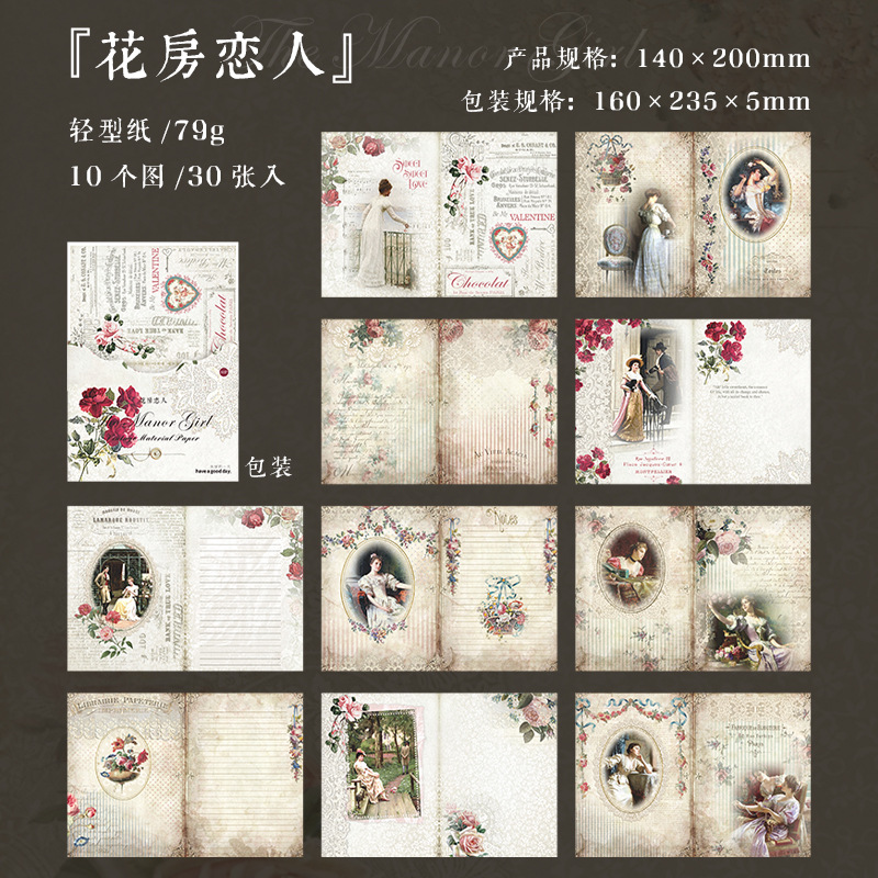 庄园少女系列素材纸 复古人物书写便签手帐装饰打底纸