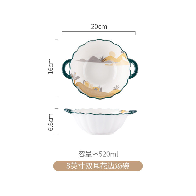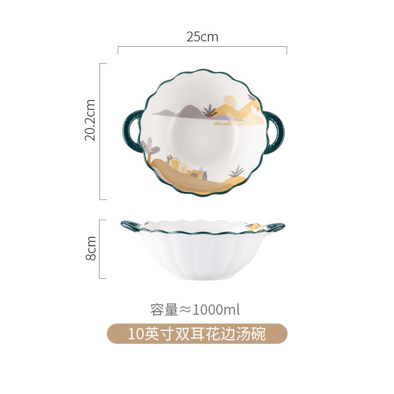 家用餐具陶瓷米饭碗盘子双耳面汤碗鱼盘乔迁组合