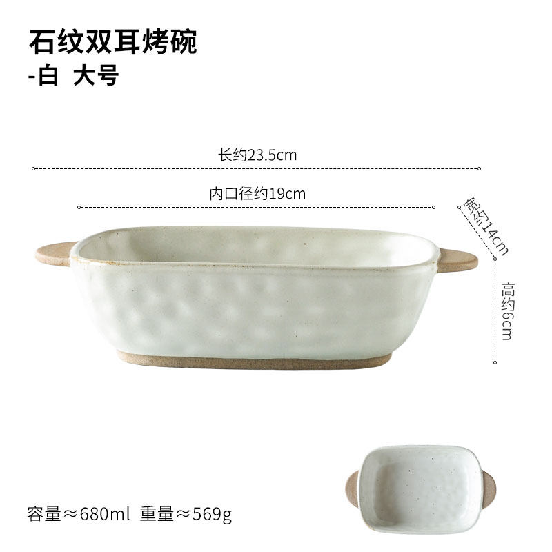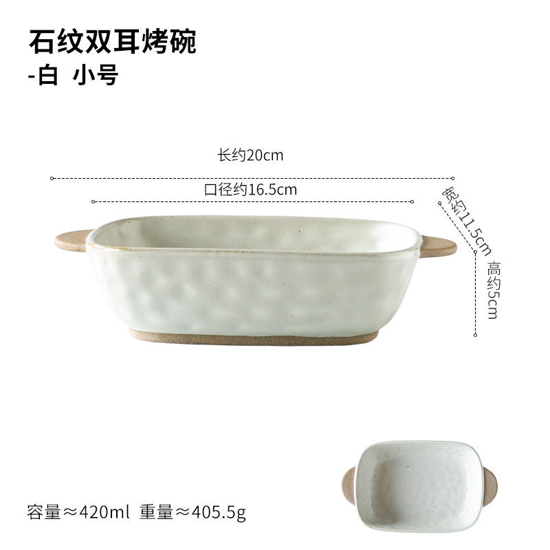 简色双耳石纹烤碗粗陶深盘复古方形盘日式家用烤盘