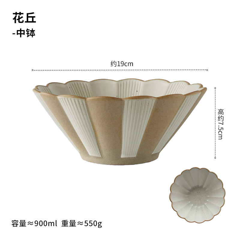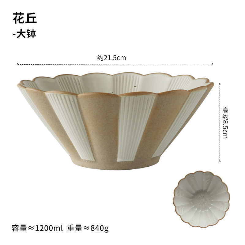 粗陶斗笠碗汤碗圆盘椭圆盘复古陶瓷碗碟家用